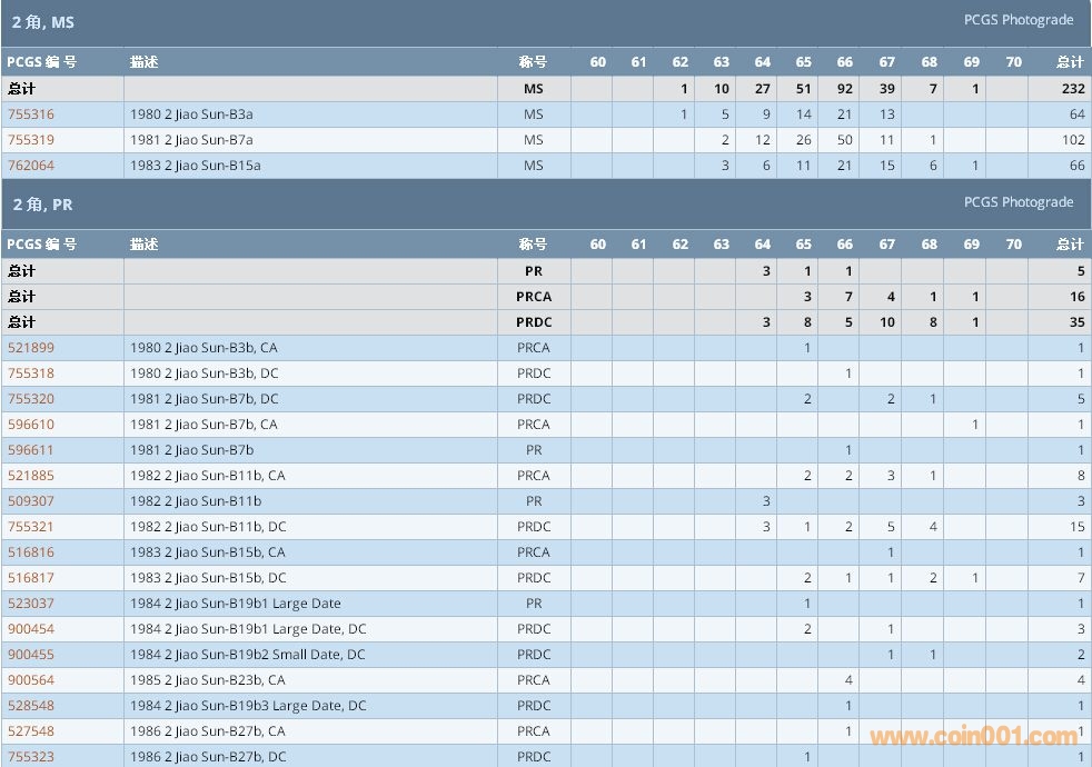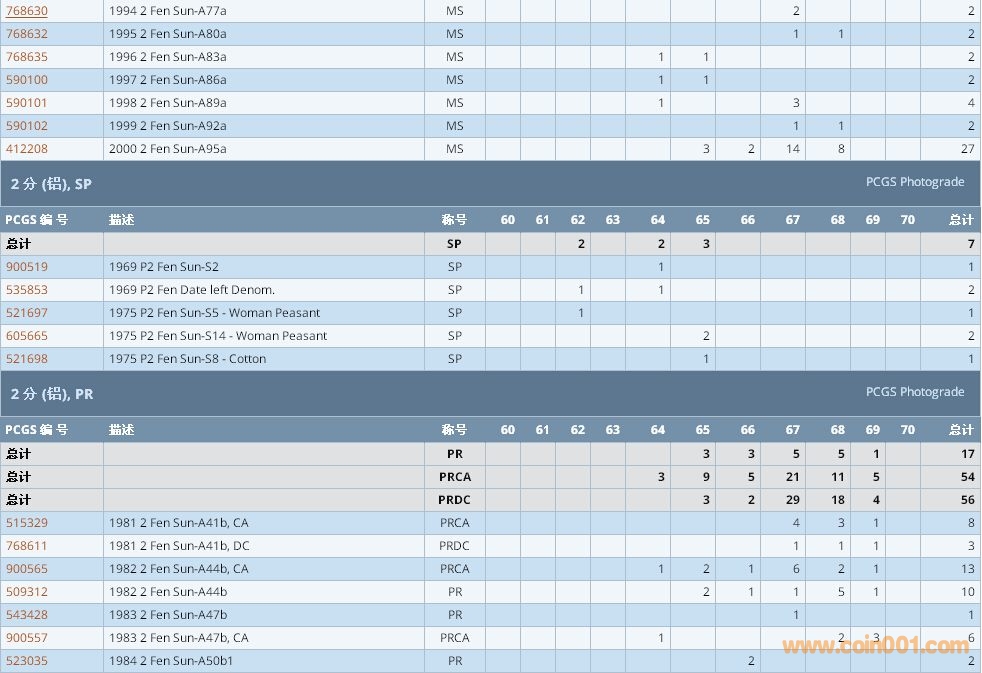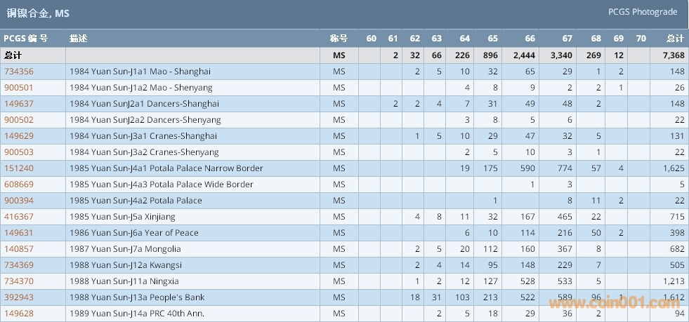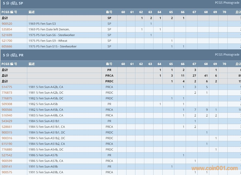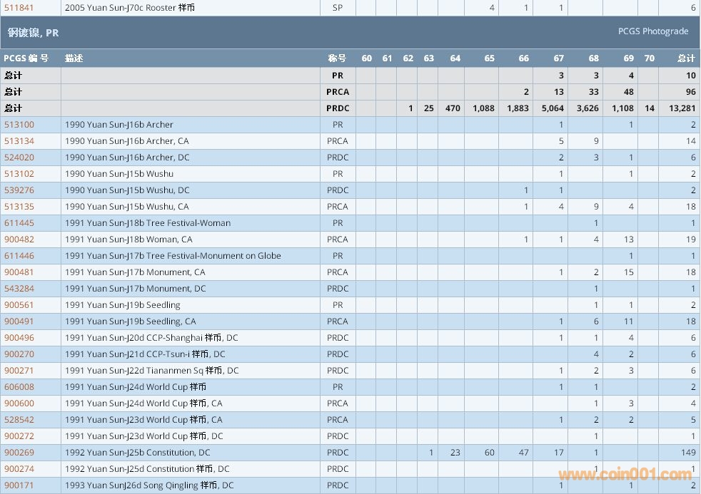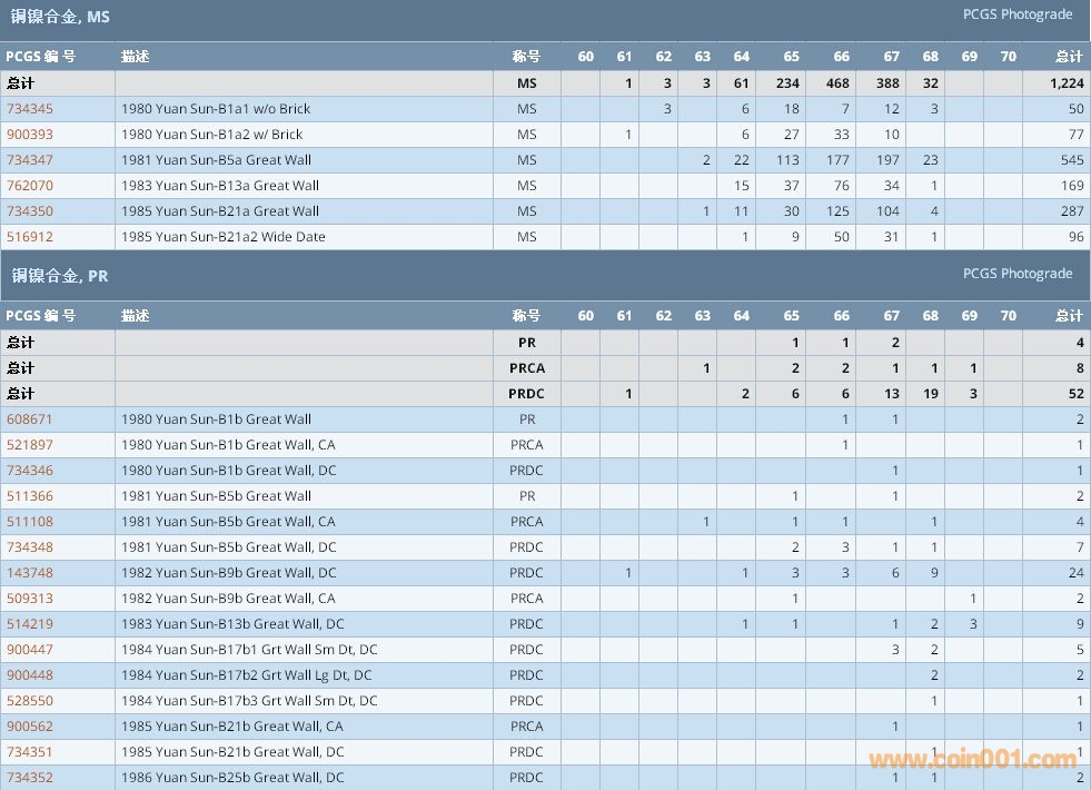 PCGS硬幣評(píng)級(jí)數(shù)量報(bào)告 ..