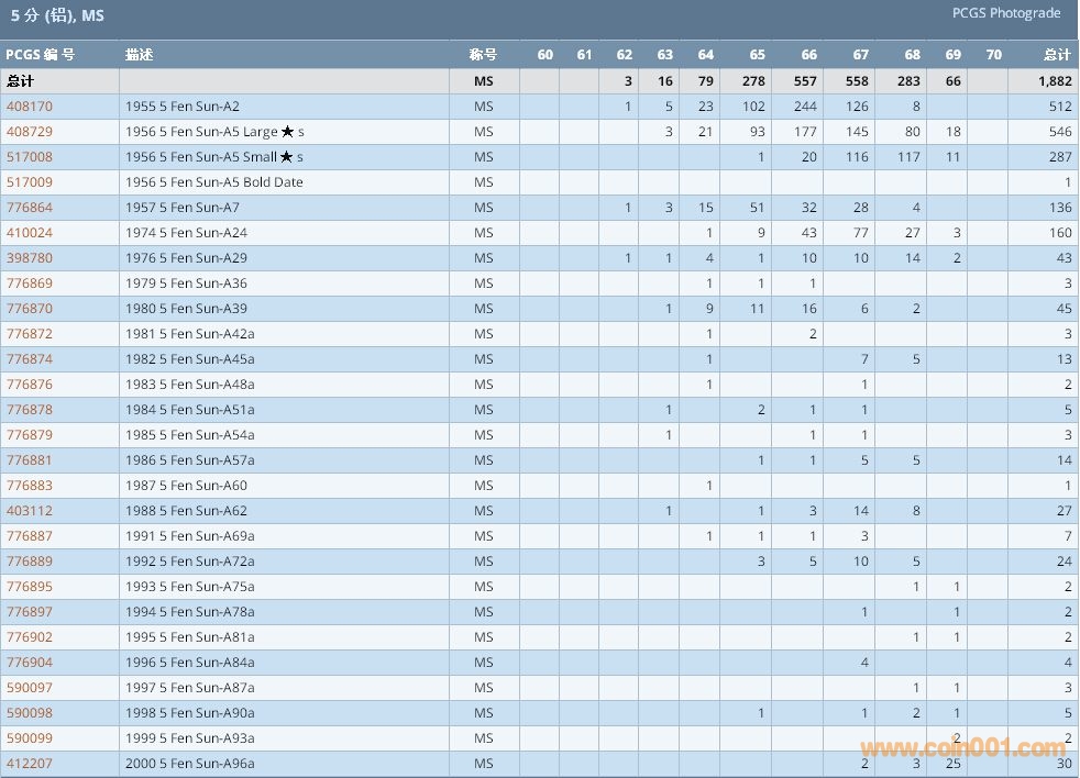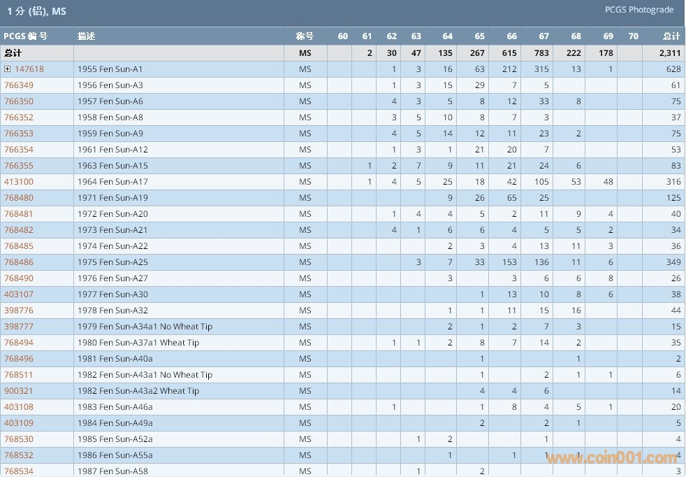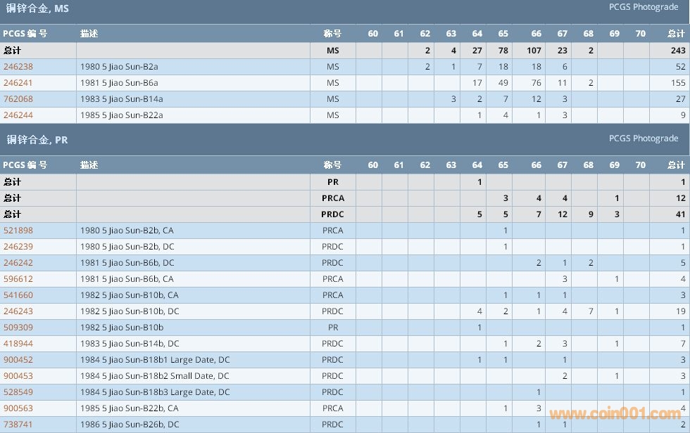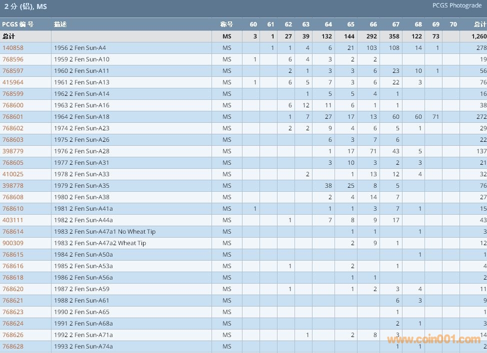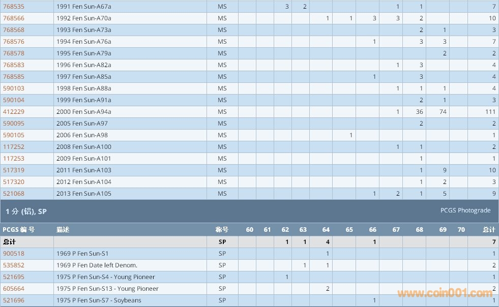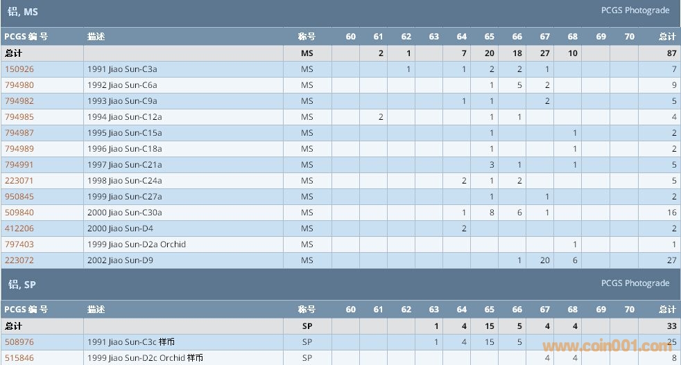 PCGS硬幣評(píng)級(jí)數(shù)量報(bào)告 ..