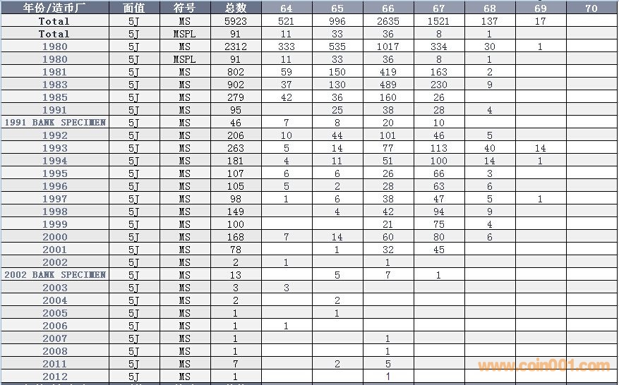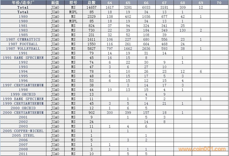 NGC硬幣評級數(shù)量報告 ..