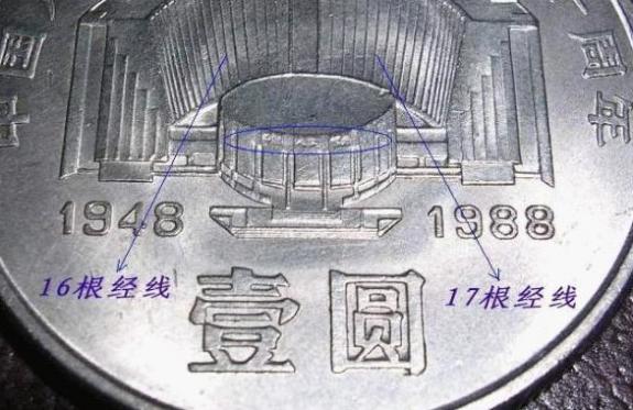 《中國人民銀行建行40周年》紀(jì)念幣此幣發(fā)行于1988年12月1日,發(fā)行量206.8萬枚,直徑30mm,重9.3克,銅鎳合金結(jié)構(gòu),面值1元,全套1枚,正面圖案;國徽、國名、年號;背面圖案,中國人民銀行行徽及總行大廈,設(shè)計者;余敏,白文均,上海鑄造廠鑄造。真幣從感觀上潔白光亮,鑄工精致,手摸光滑,正背面圖案文字輪廓清晰。用放大鏡觀察邊齒均勻,錯落有致,背面總行辦公樓墻體和中心樓線條垂直,疏密一致,屋頂二個方塊勻稱,圓形中心樓頂部光亮有立體感;麥穗紋路清晰,天安門前的華表、中文、年號及符合清晰而有立體感,五角星凸感強(qiáng)。