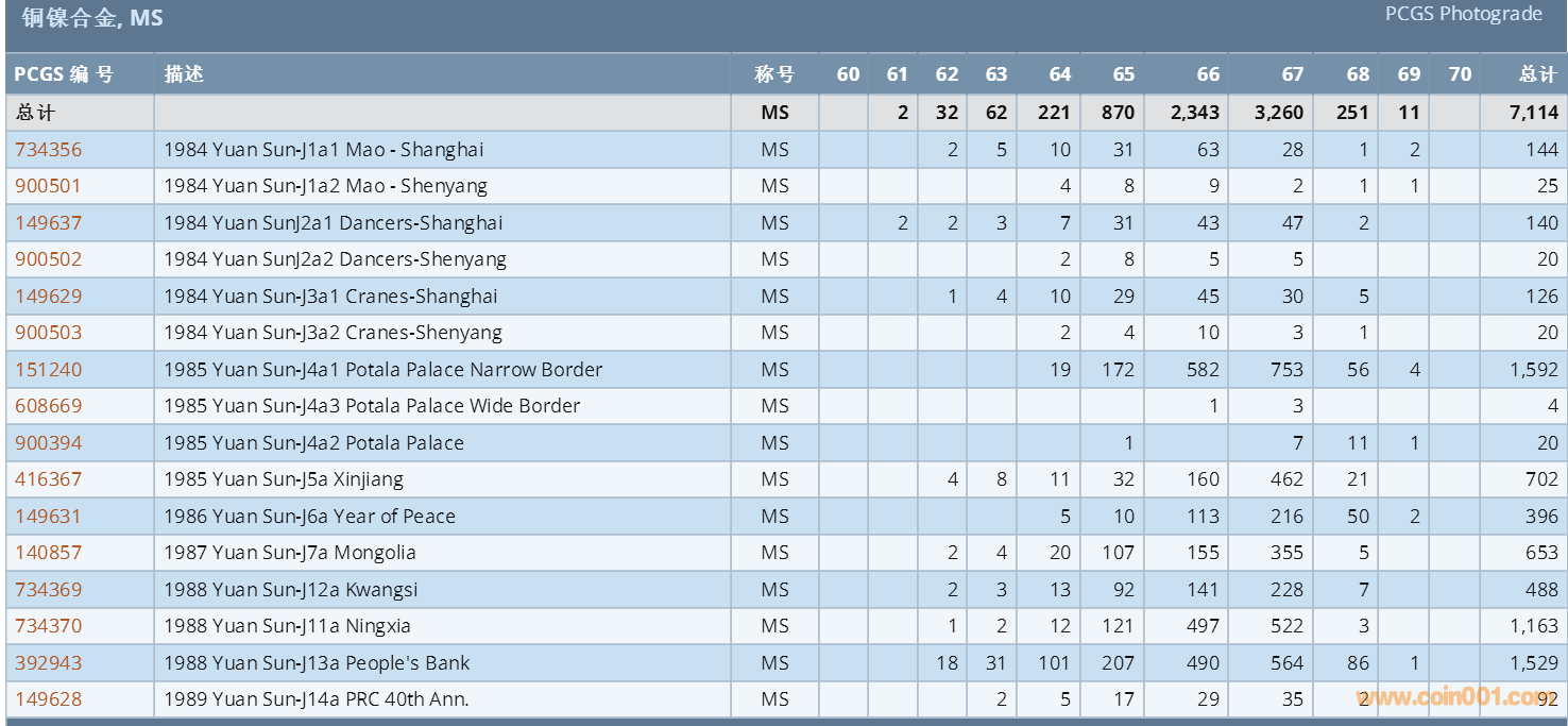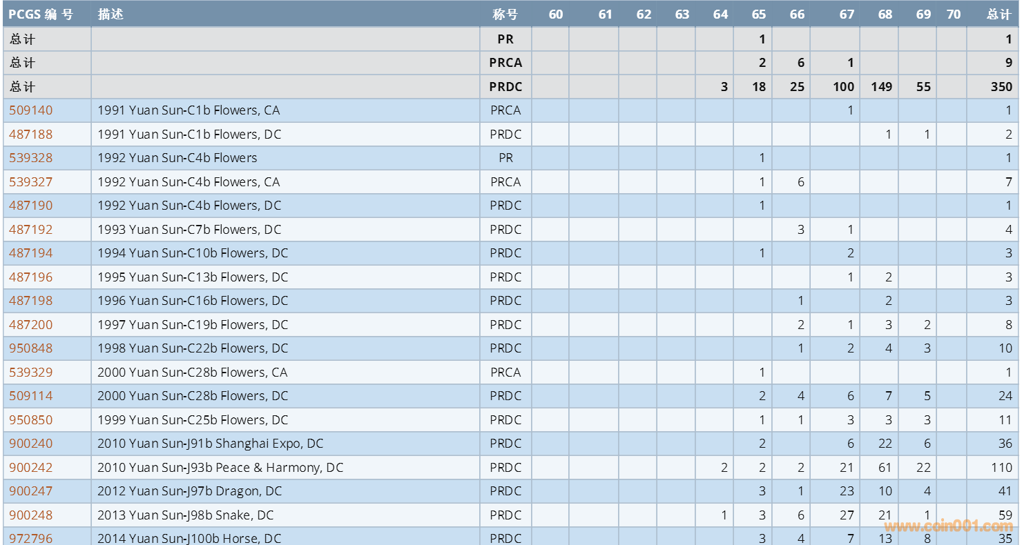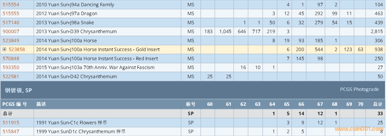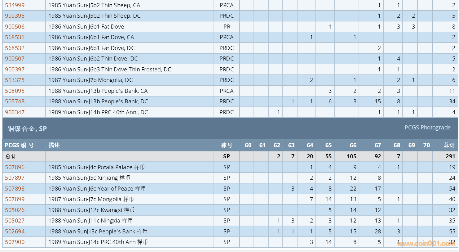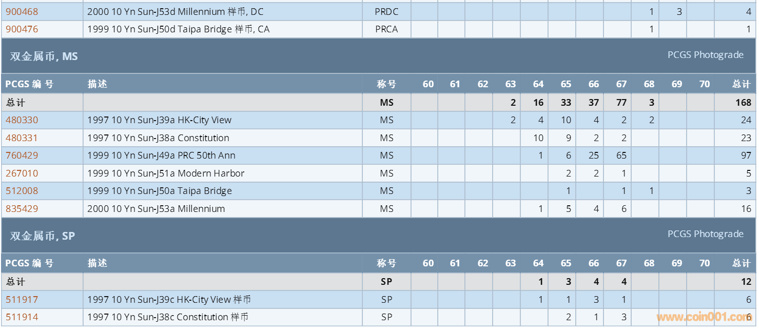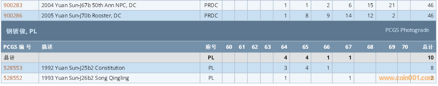 PCGS硬幣評級數(shù)量報(bào)告 ..