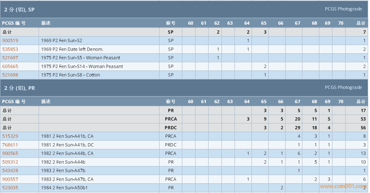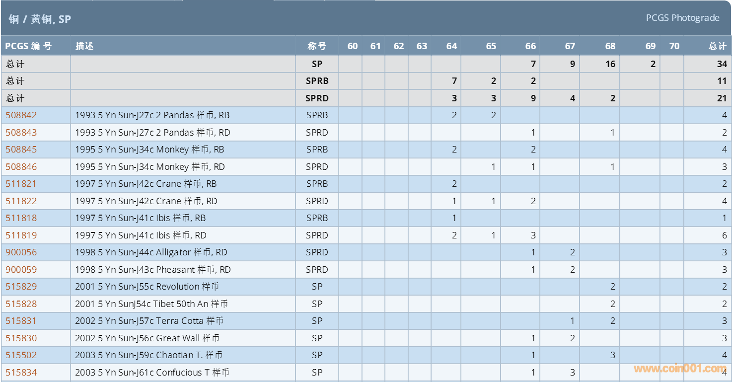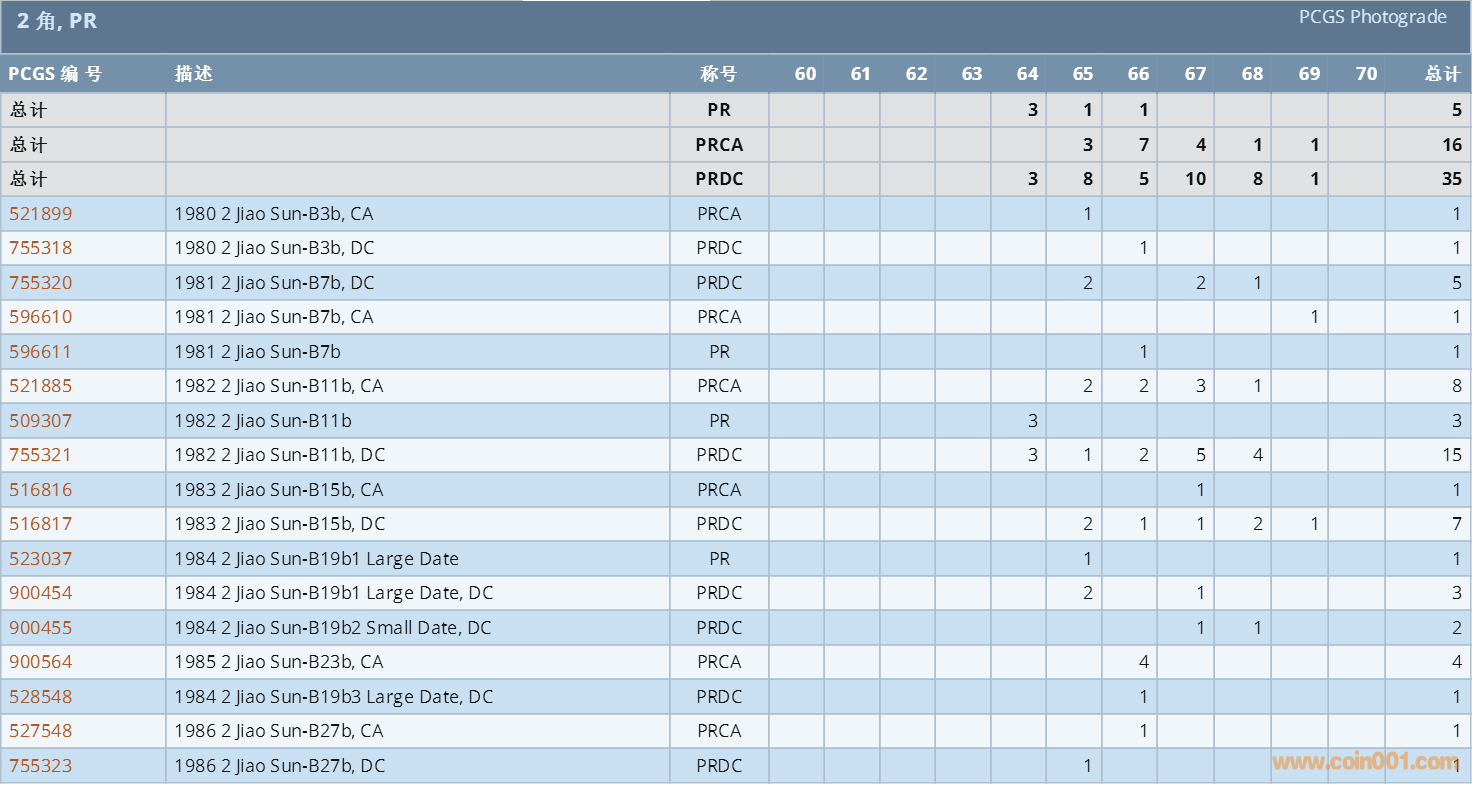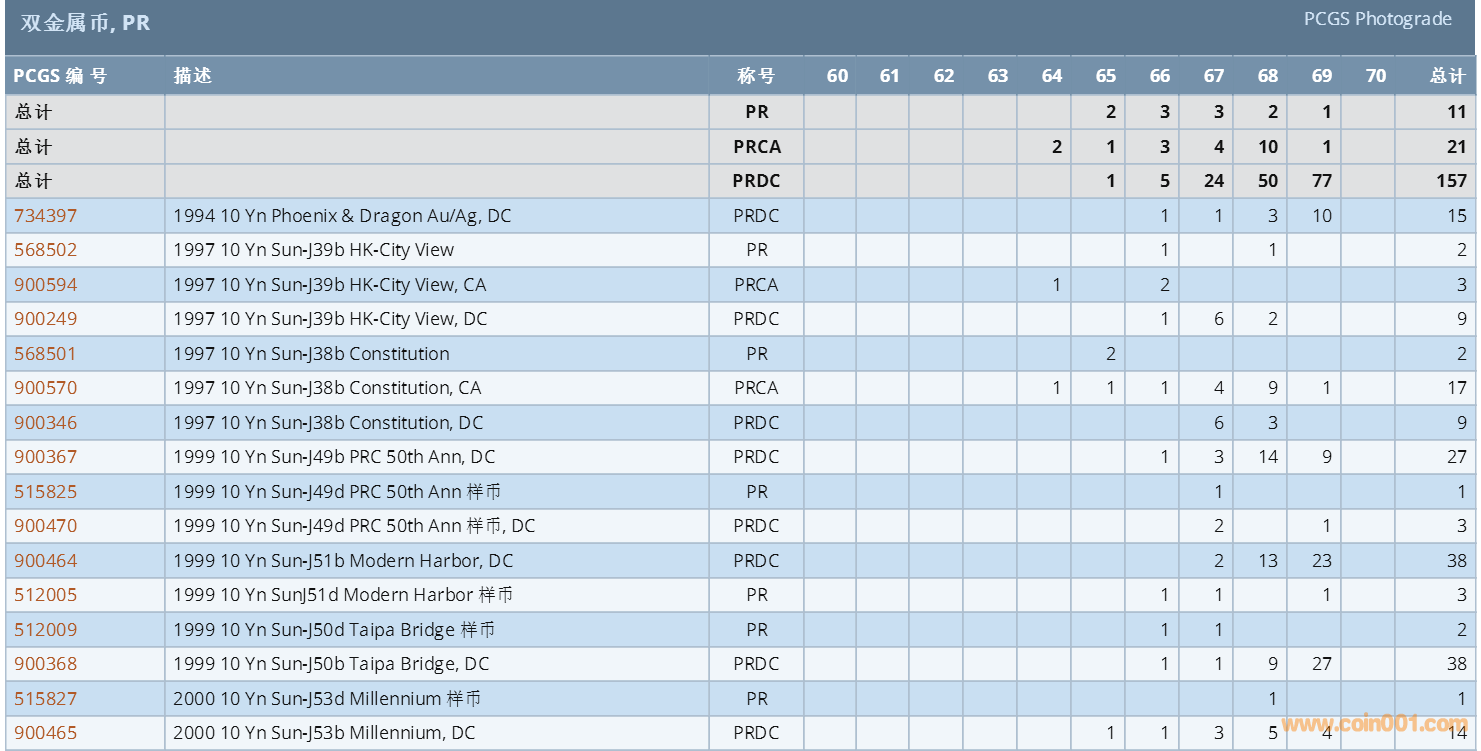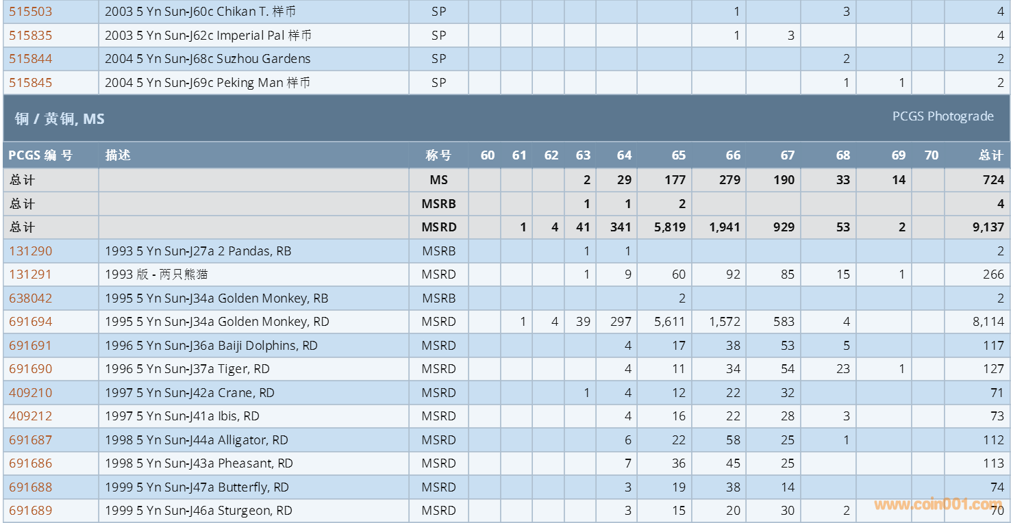 PCGS硬幣評級數(shù)量報(bào)告 ..
