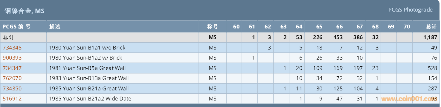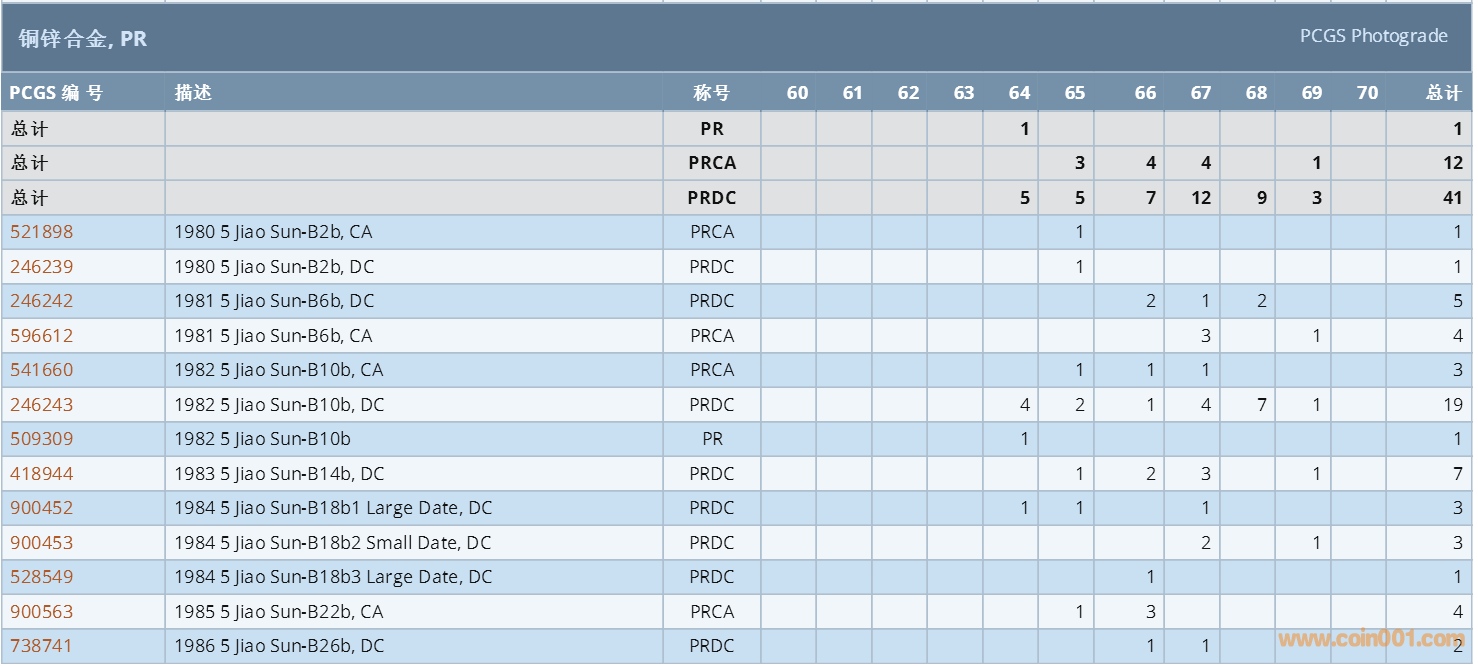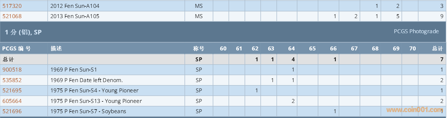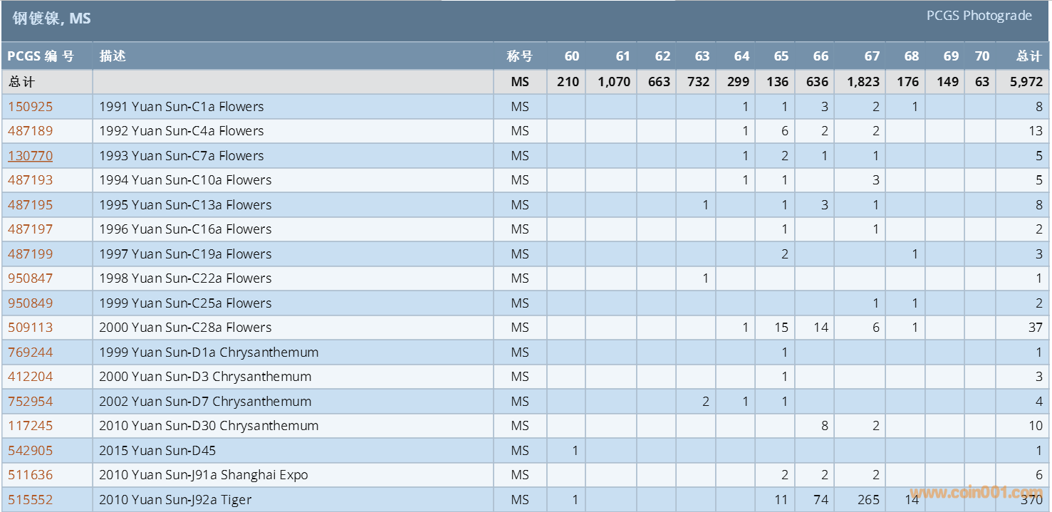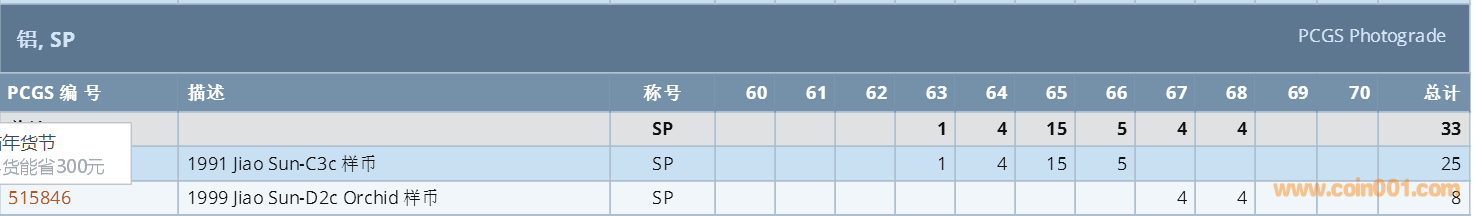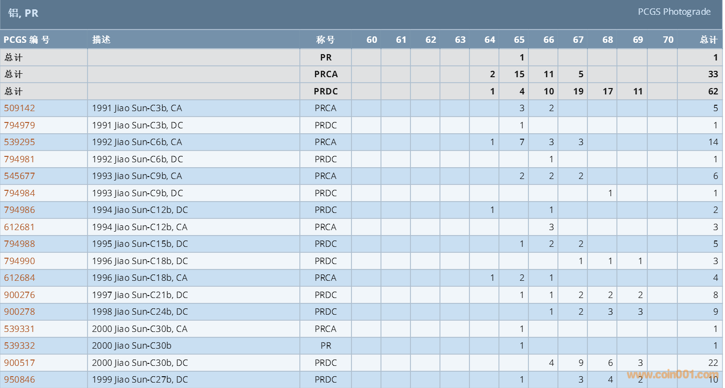 PCGS硬幣評級數(shù)量報(bào)告 ..