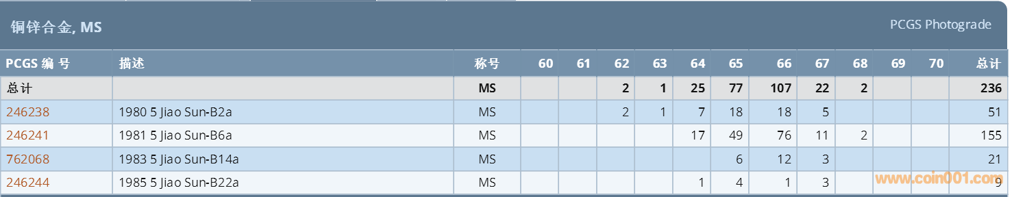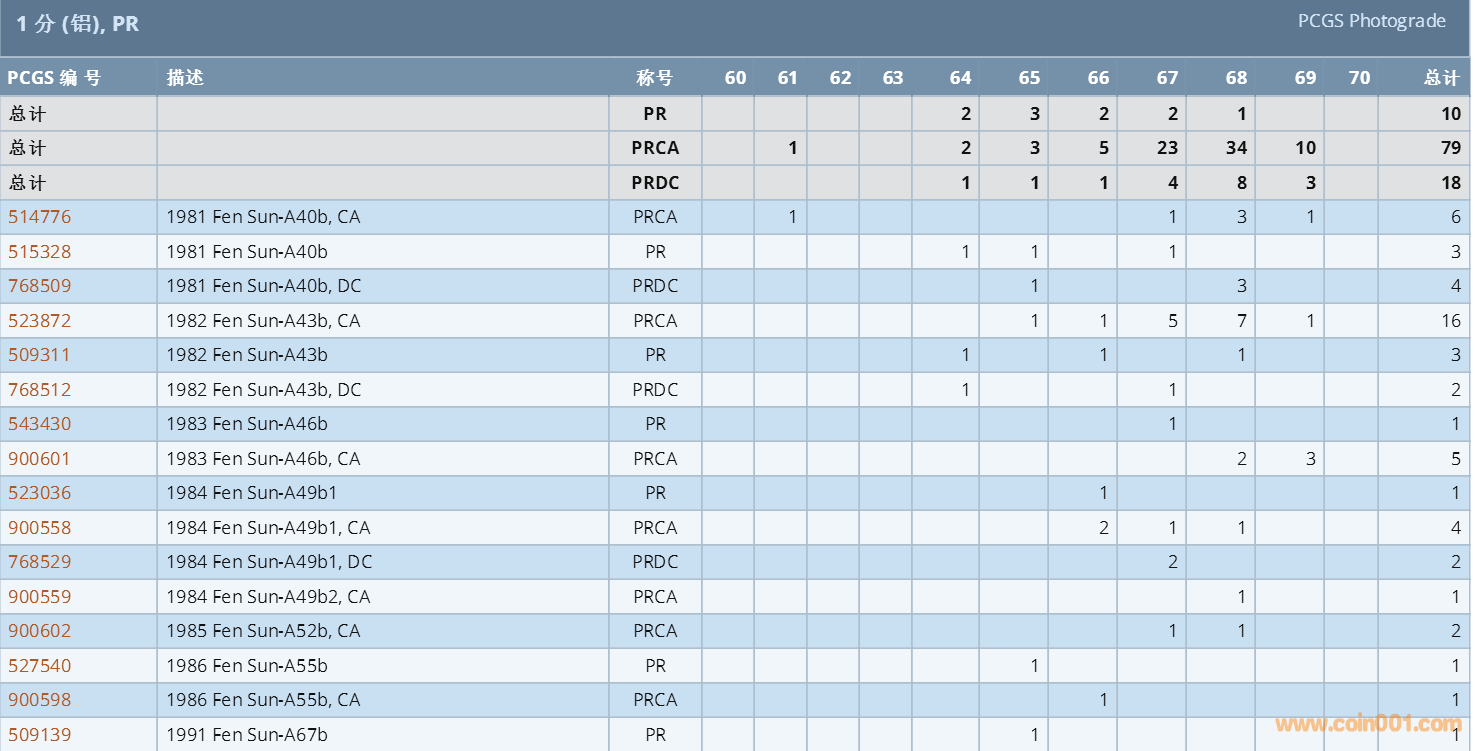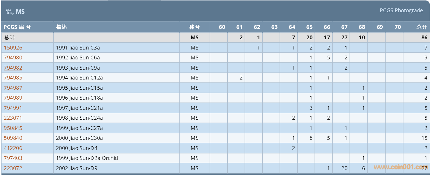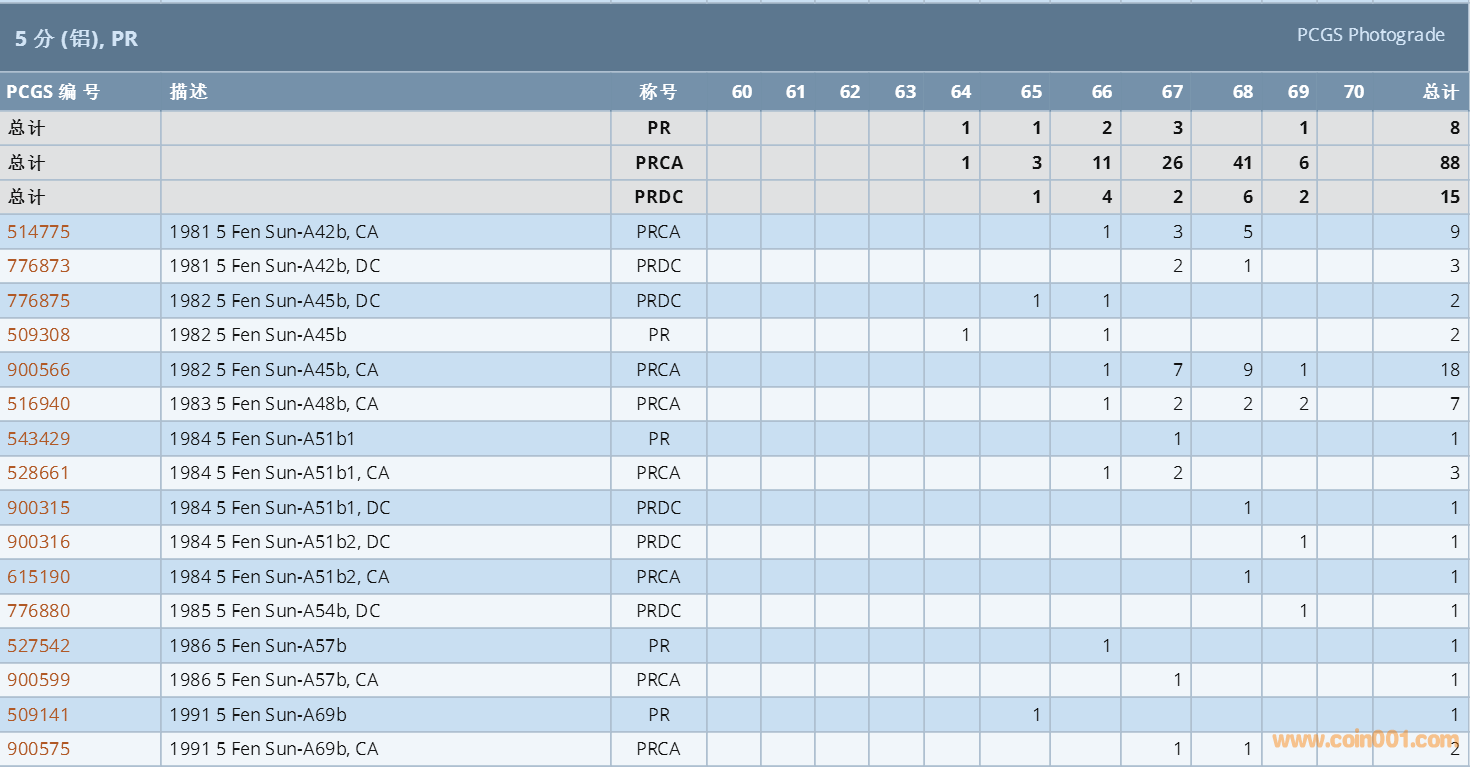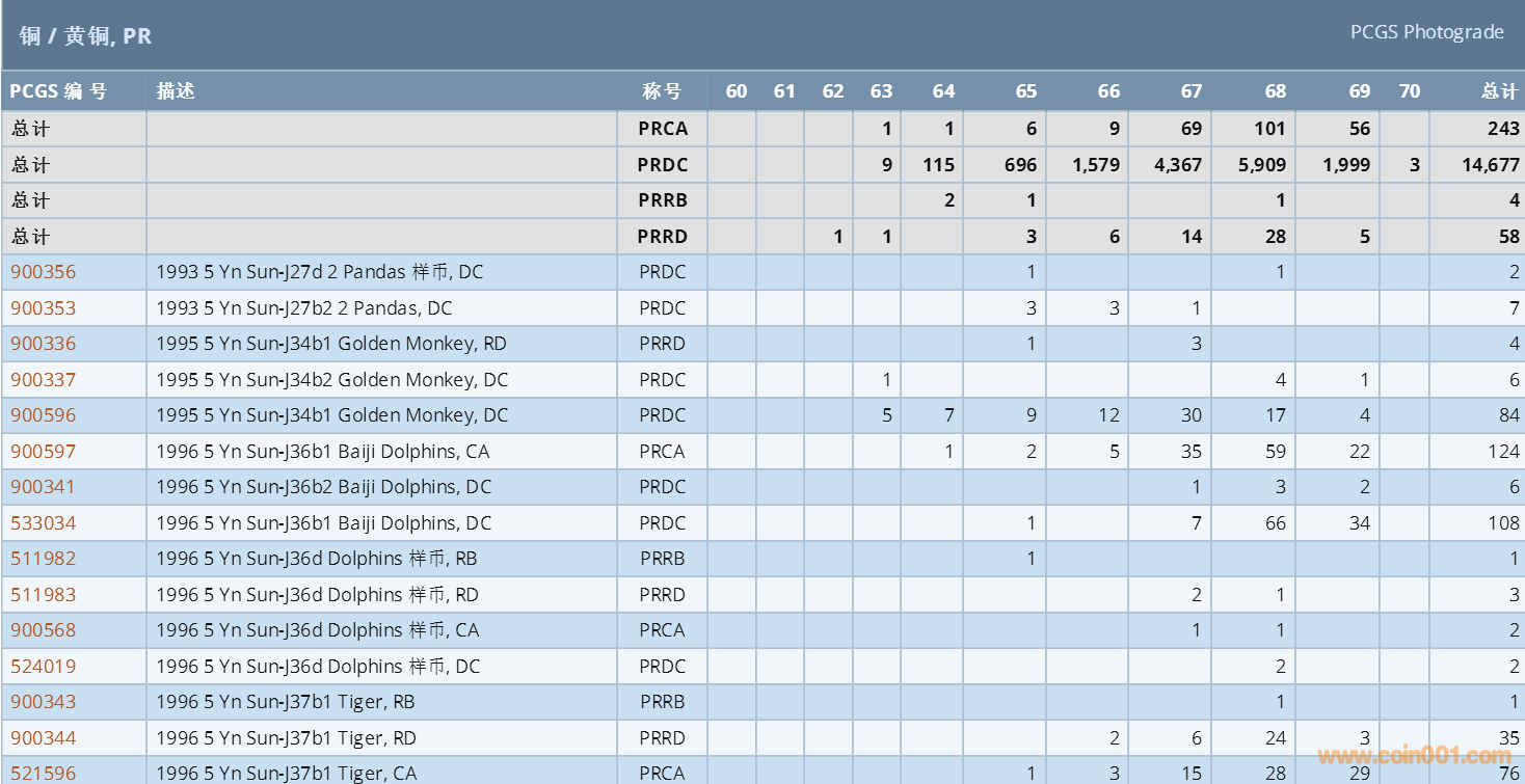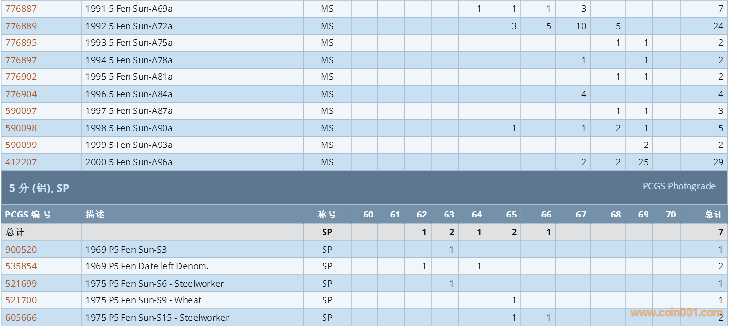 PCGS硬幣評級數(shù)量報(bào)告 ..