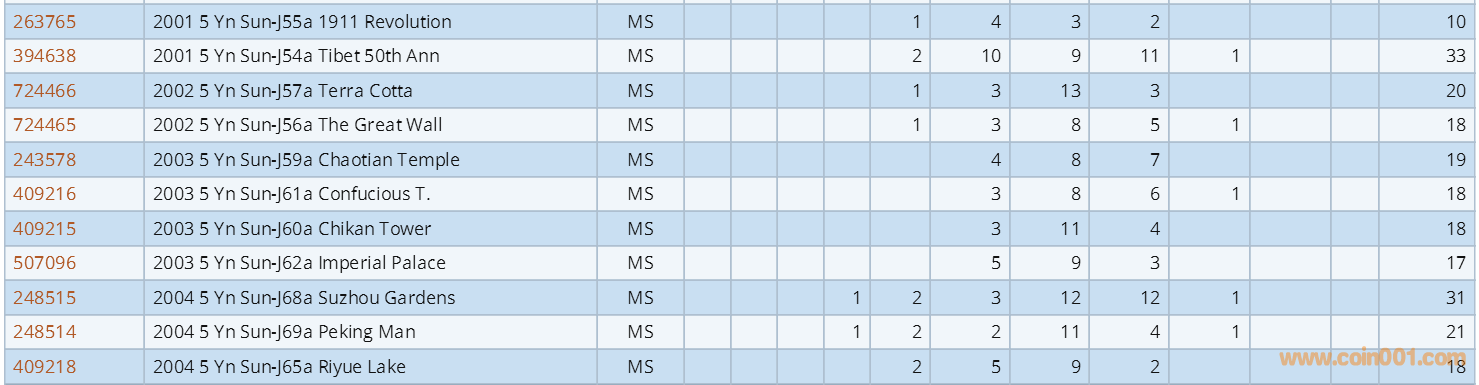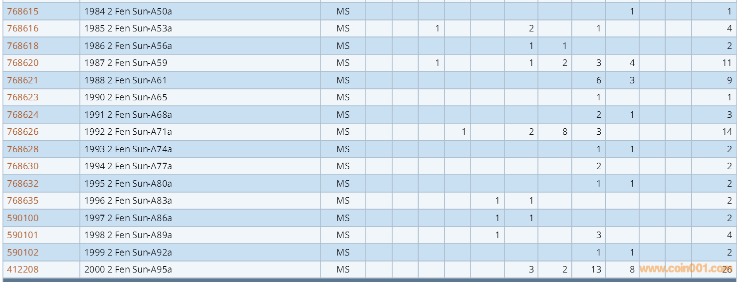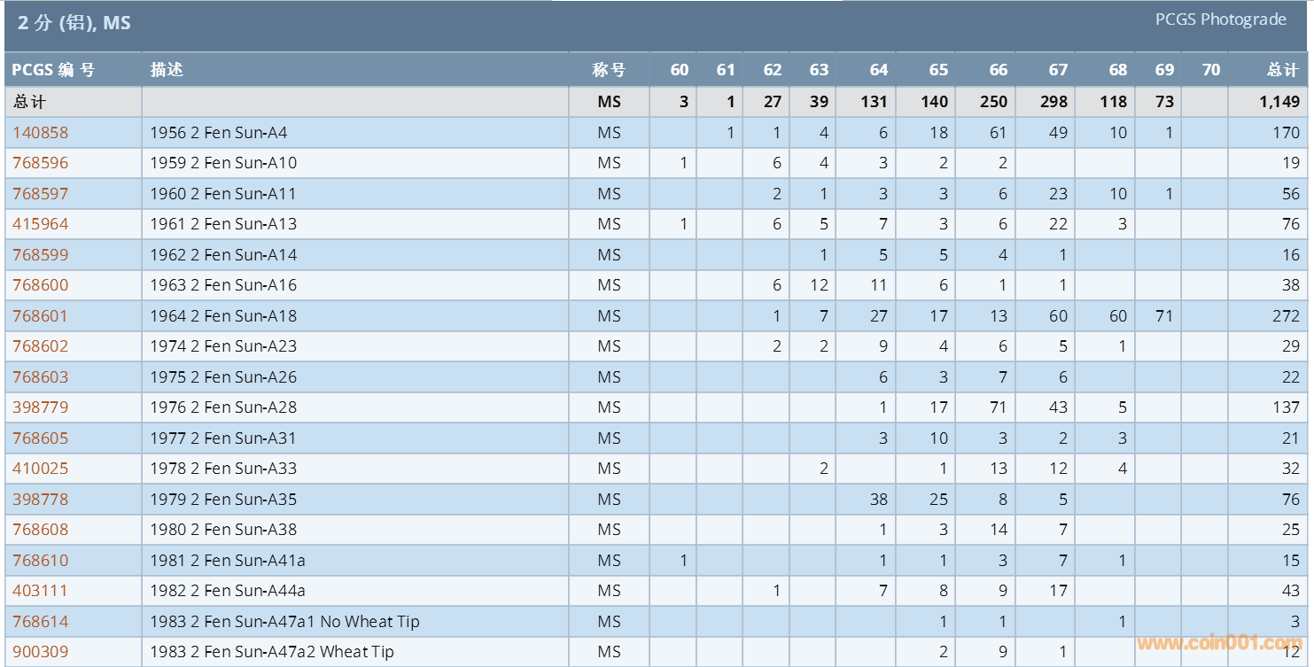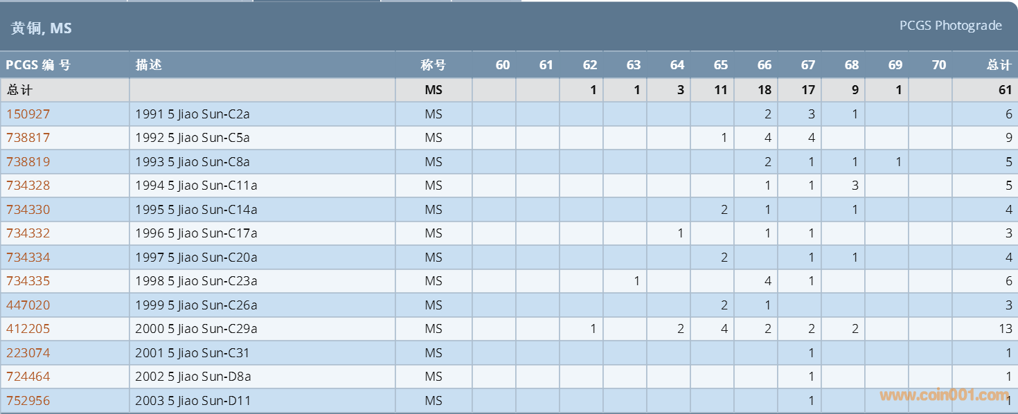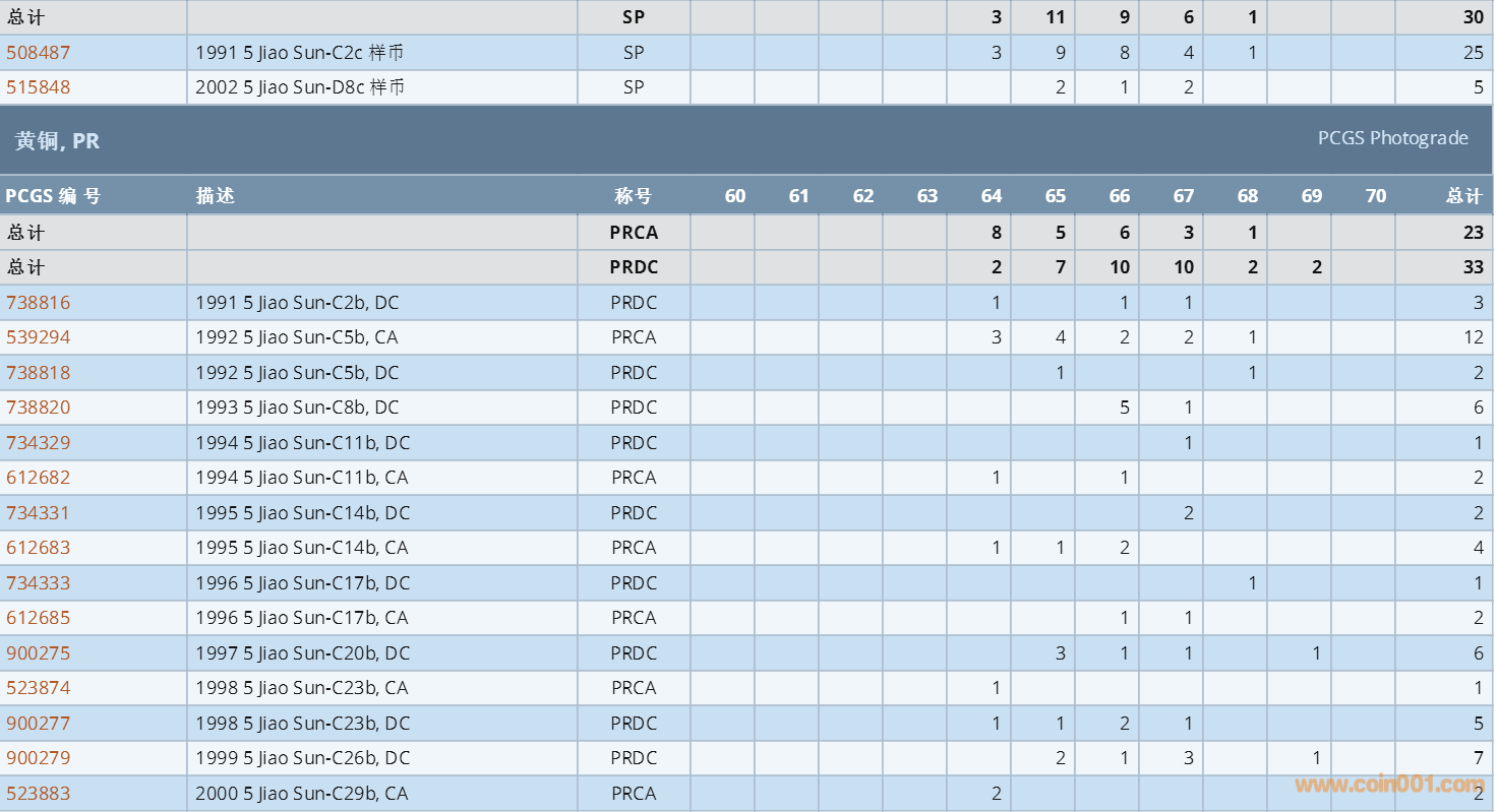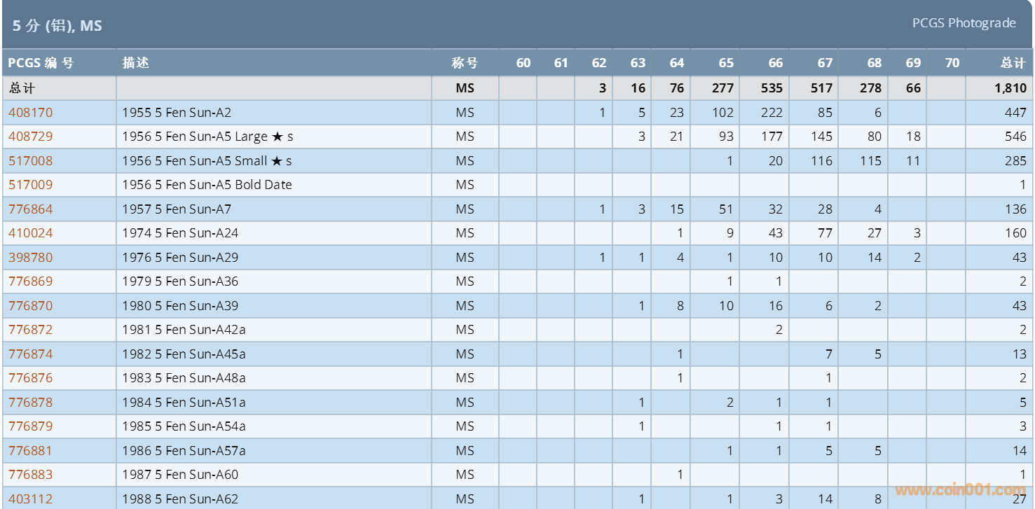 PCGS硬幣評級數(shù)量報(bào)告 ..