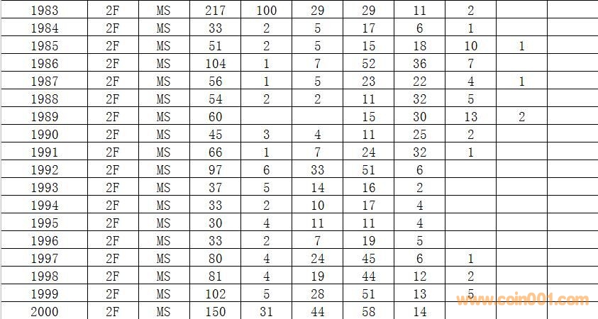 NGC  1元硬幣評級數(shù)量報告