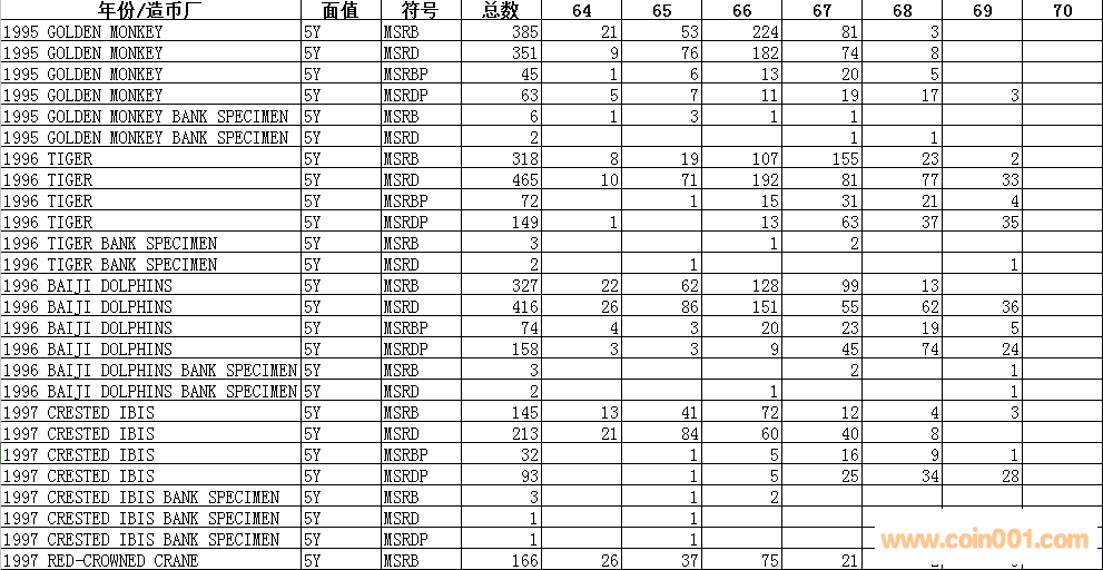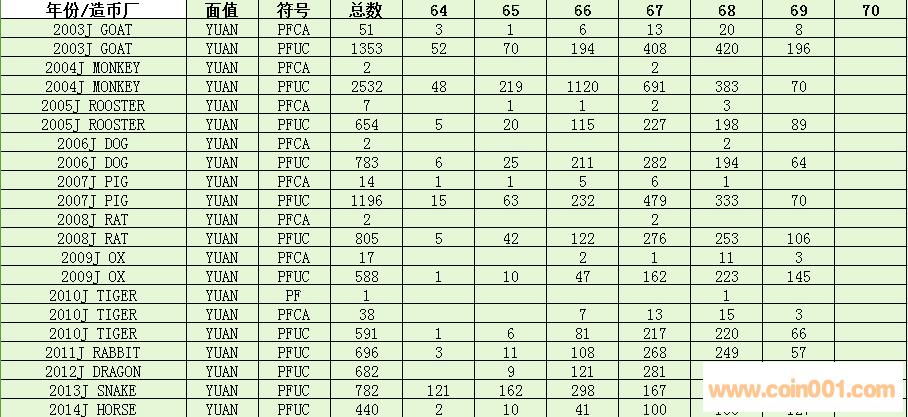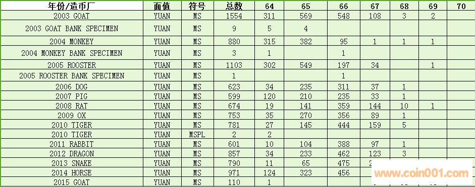 NGC  生肖幣評級數(shù)量報告