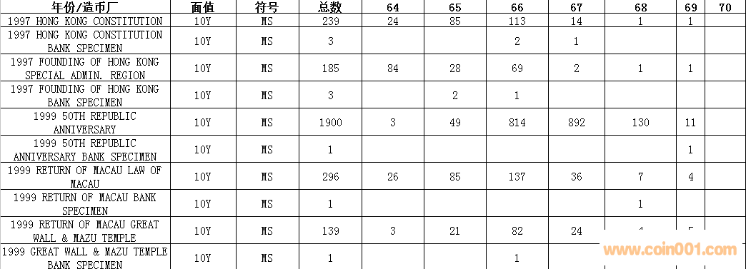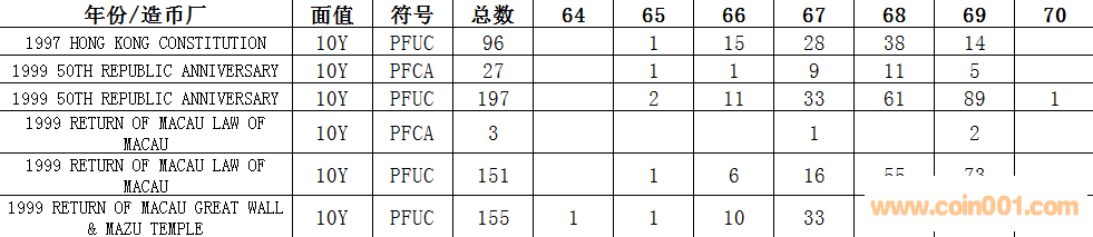 NGC  10元硬幣評級數(shù)量報告