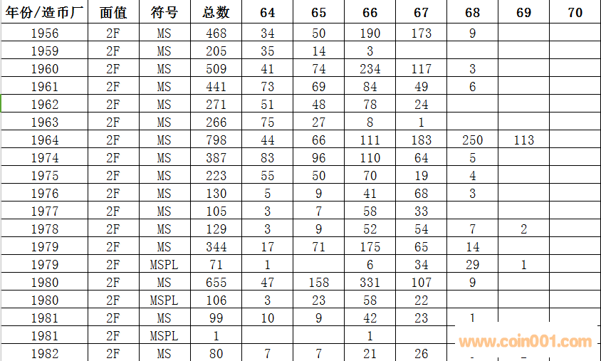 NGC  2分硬幣評級數(shù)量報告