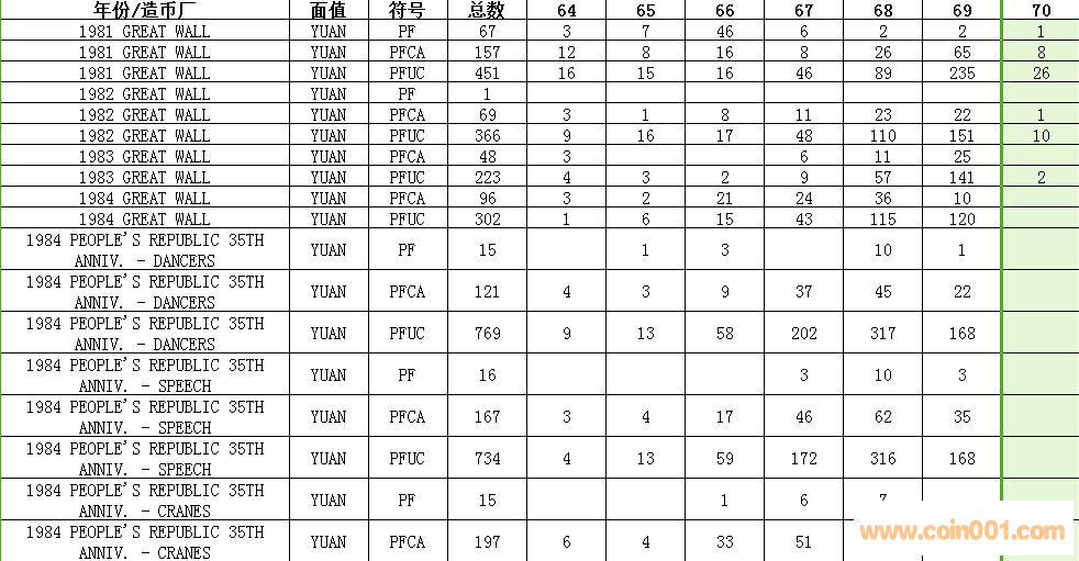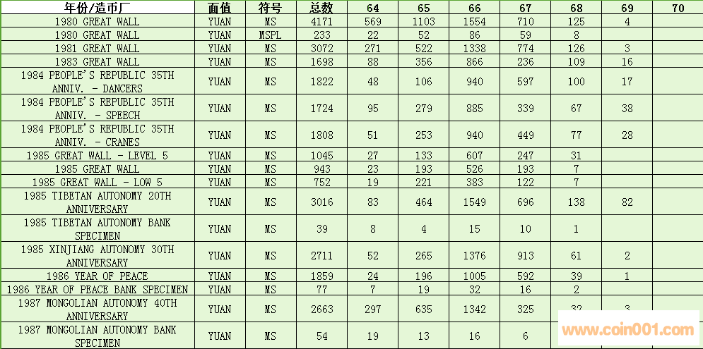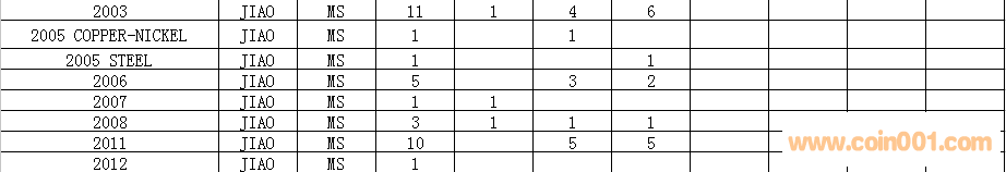 [color=#014c90 ]NGC  1分硬幣評級數(shù)量報告