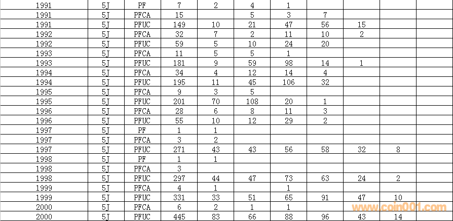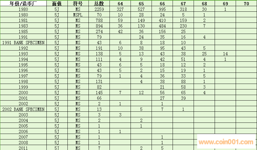 NGC  5分硬幣評級數(shù)量報告