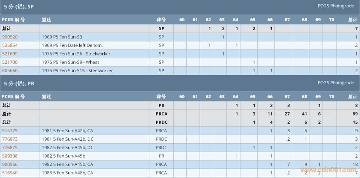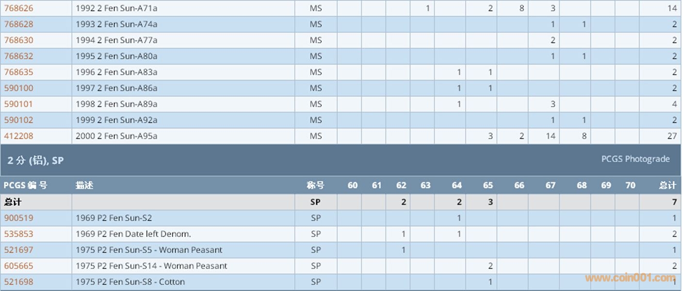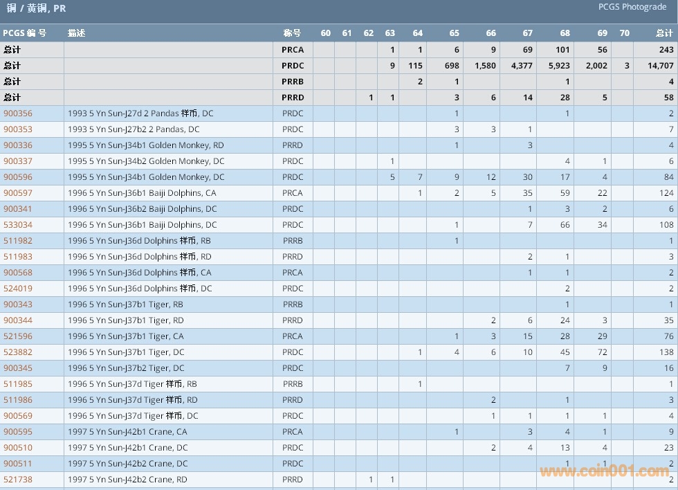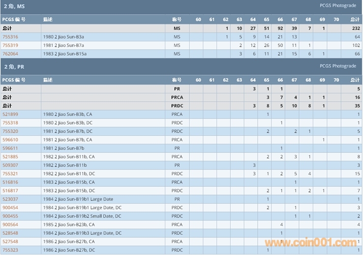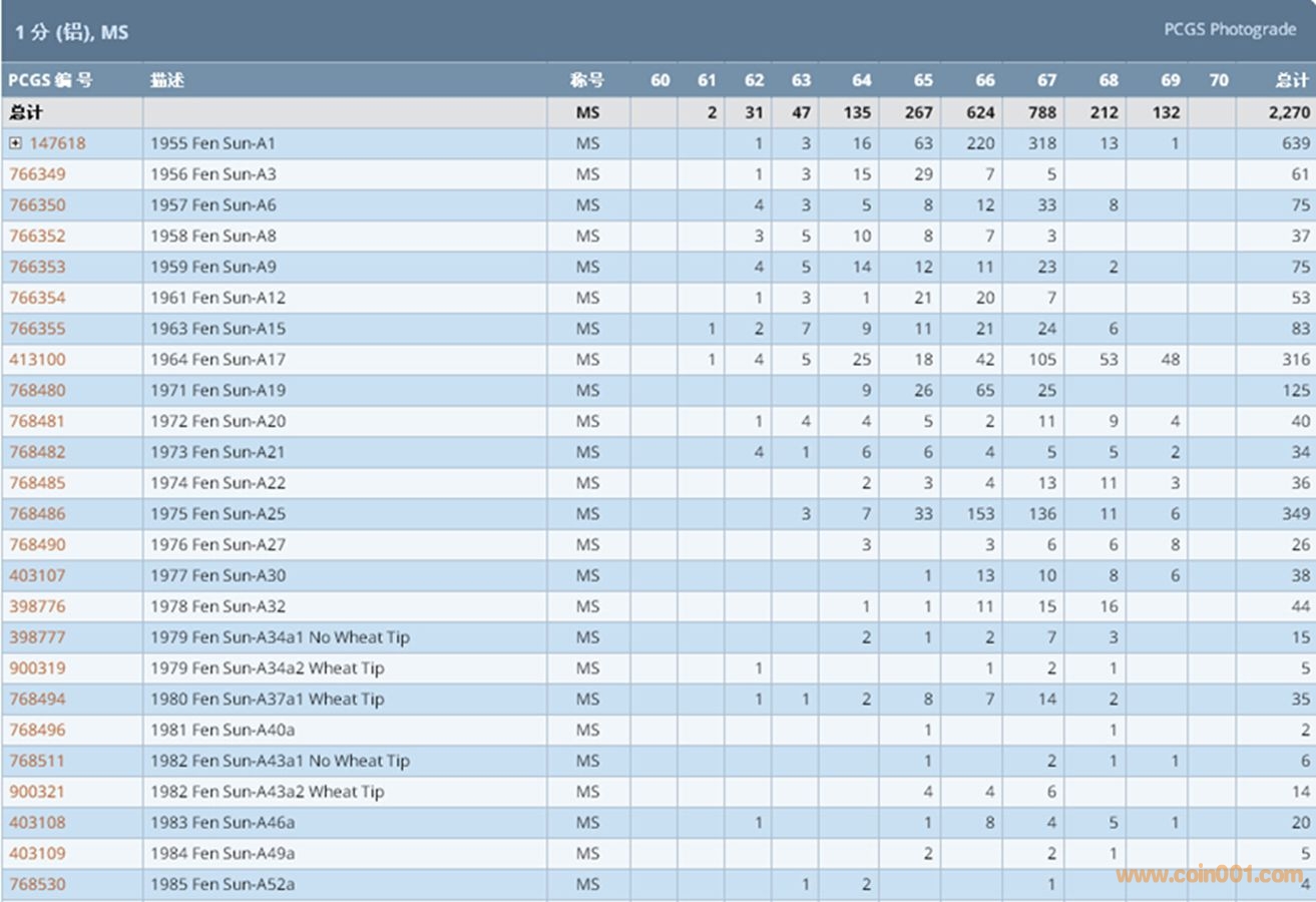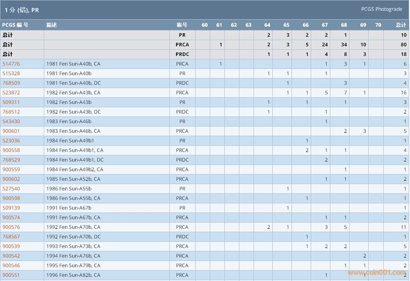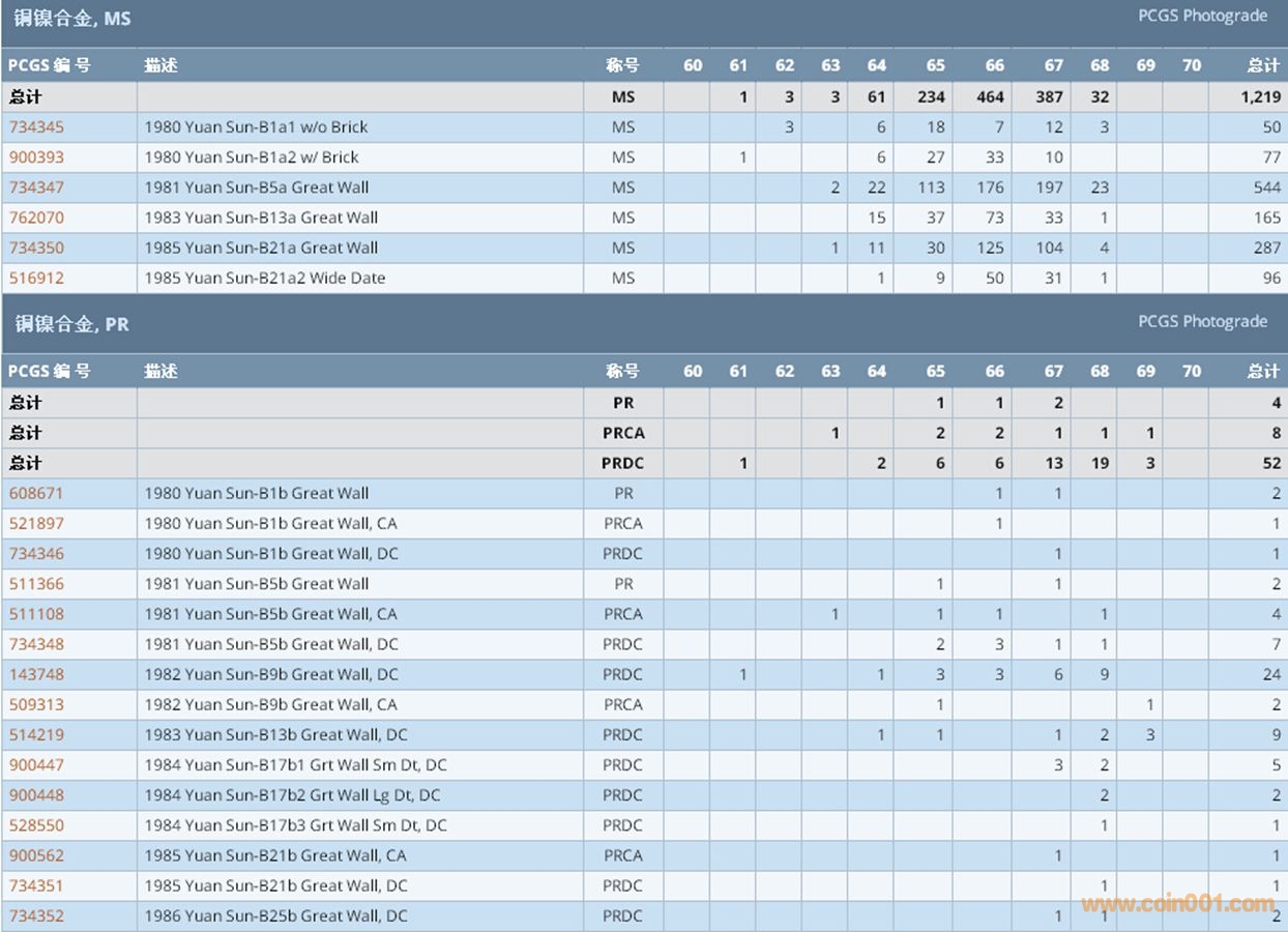 PCGS硬幣評級數(shù)量報告 ..