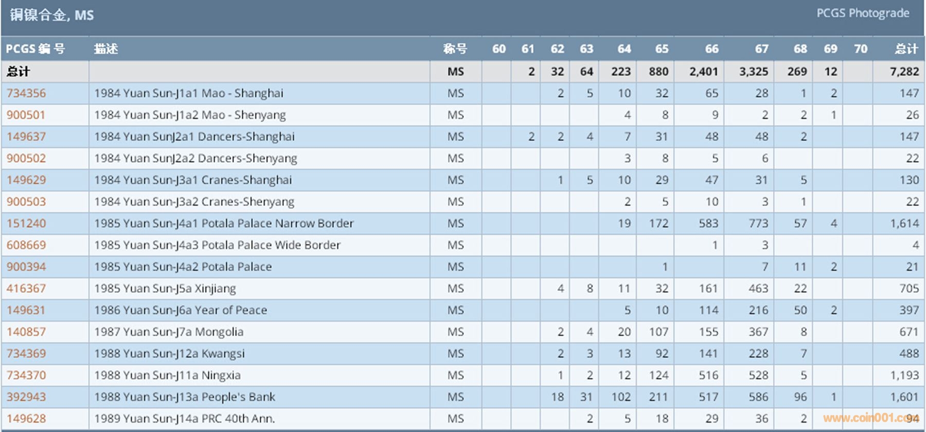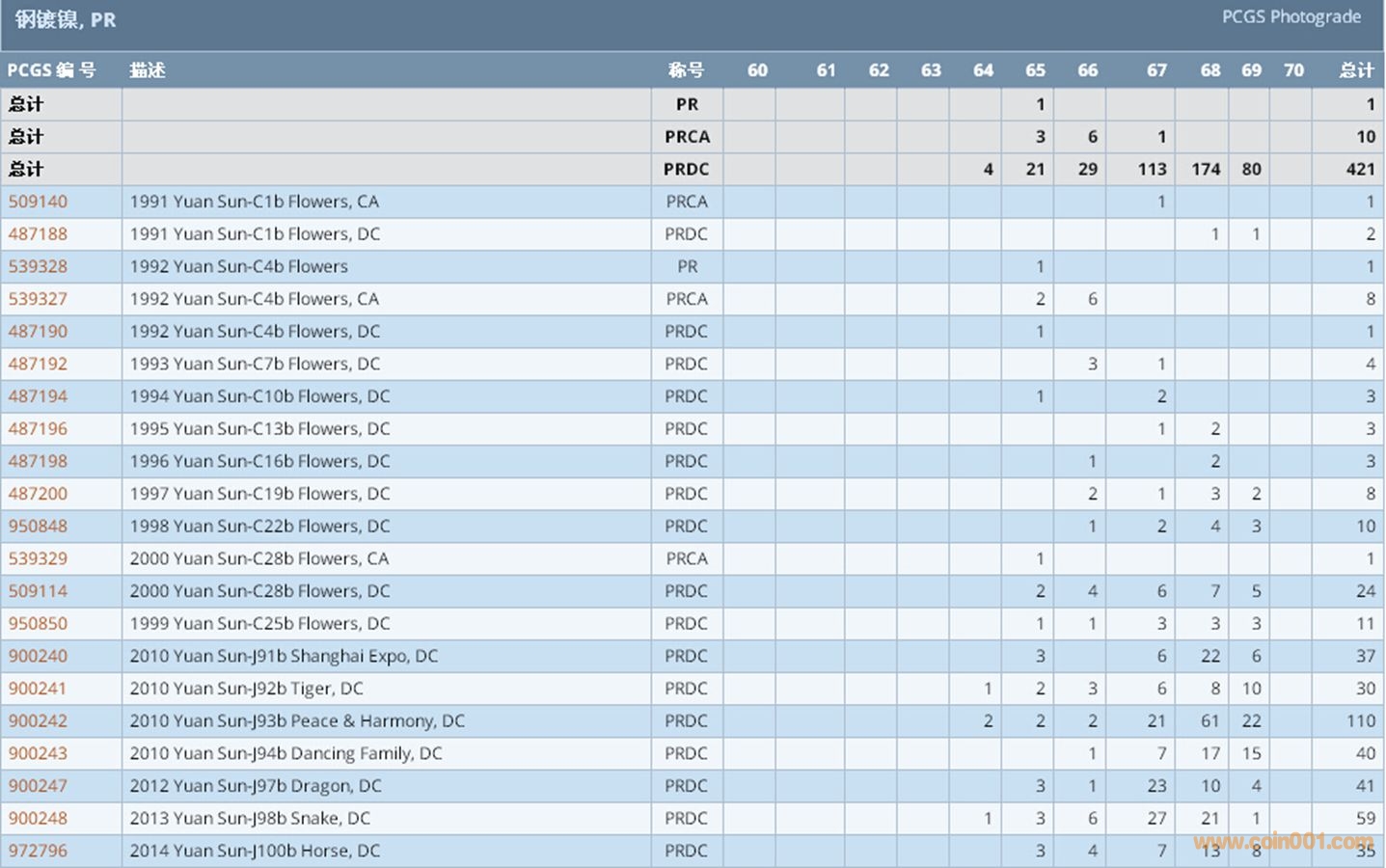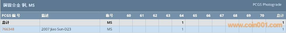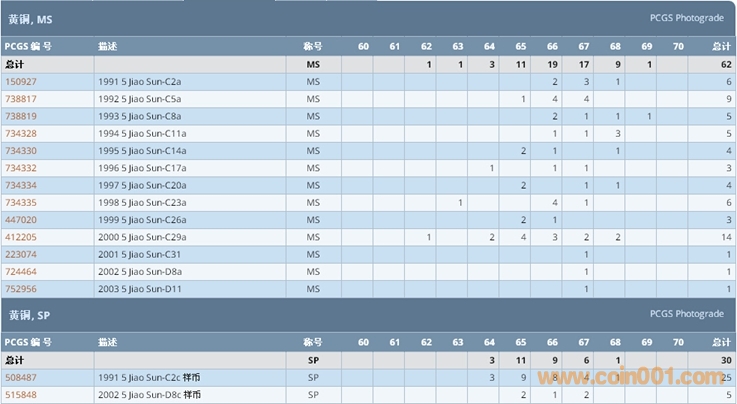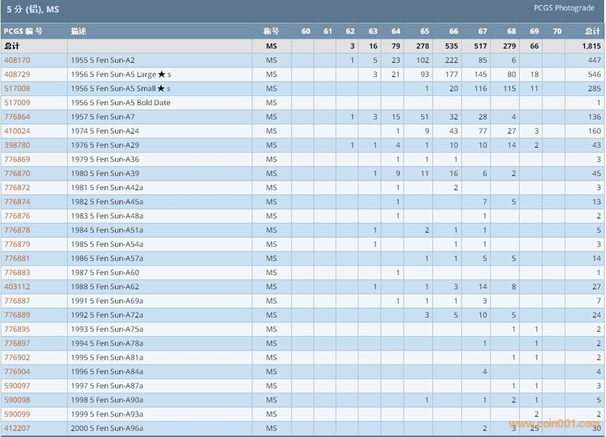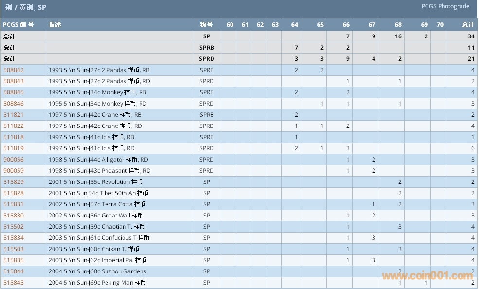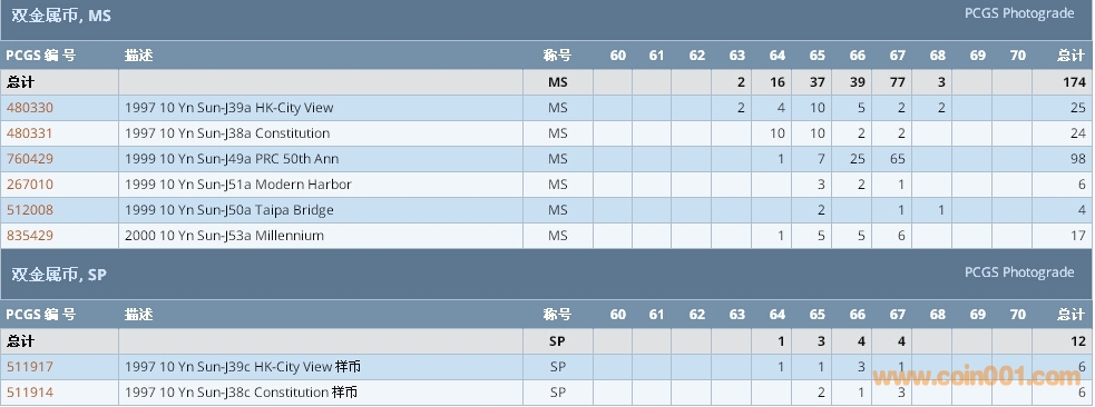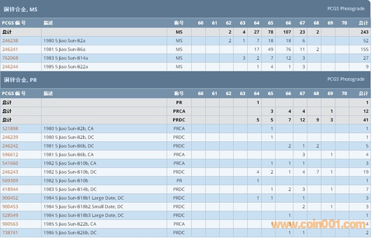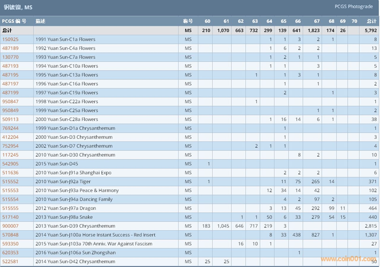 PCGS硬幣評級數(shù)量報告 ..