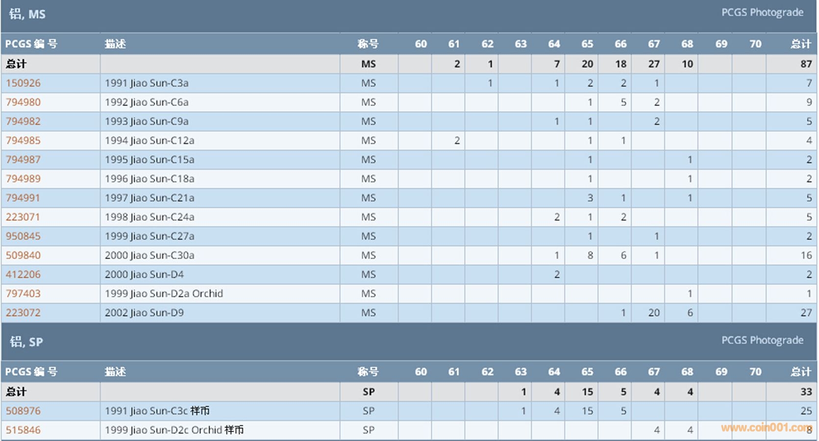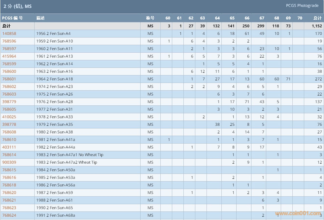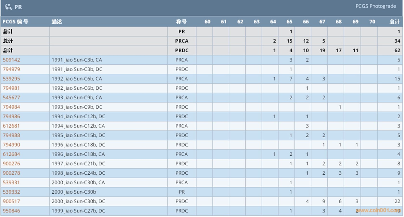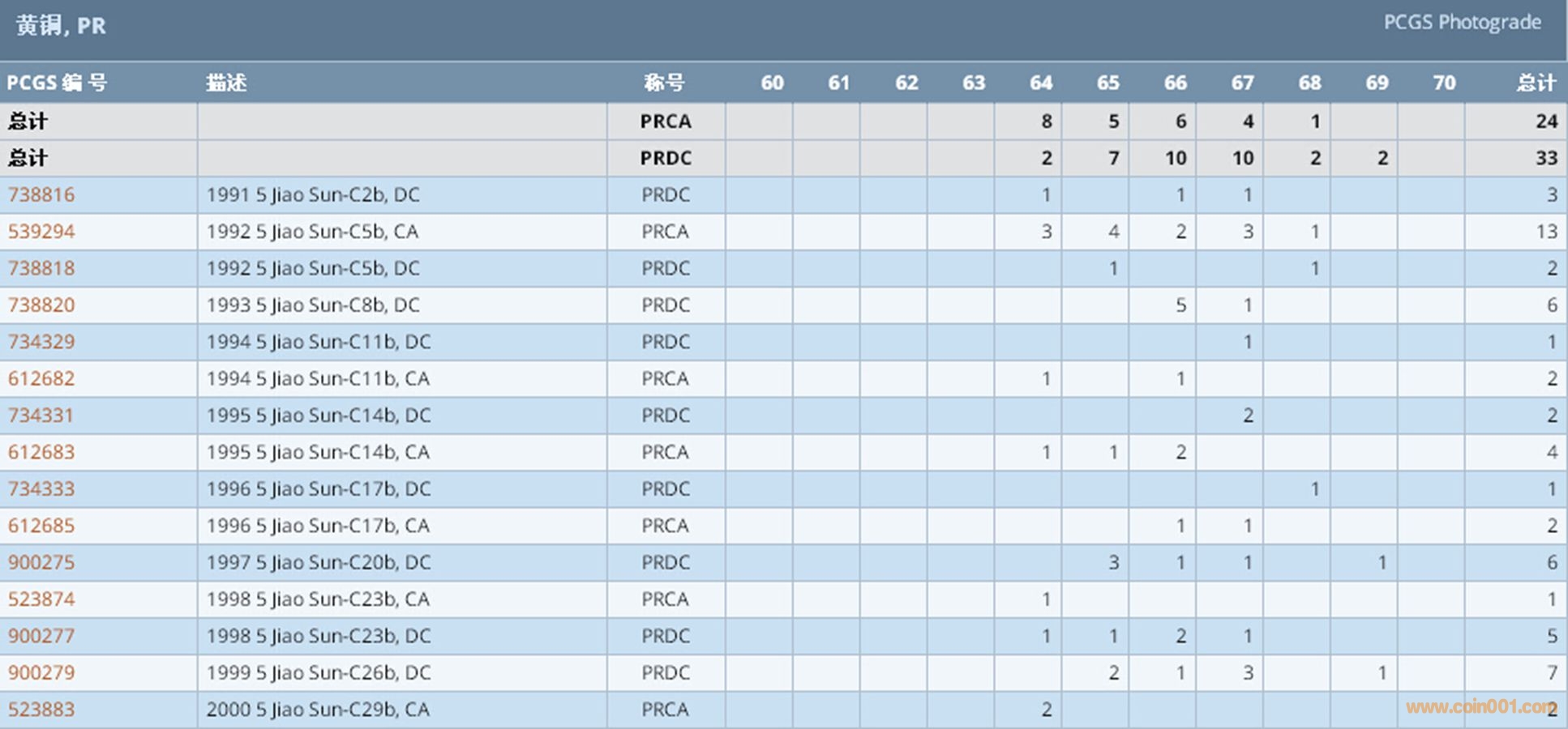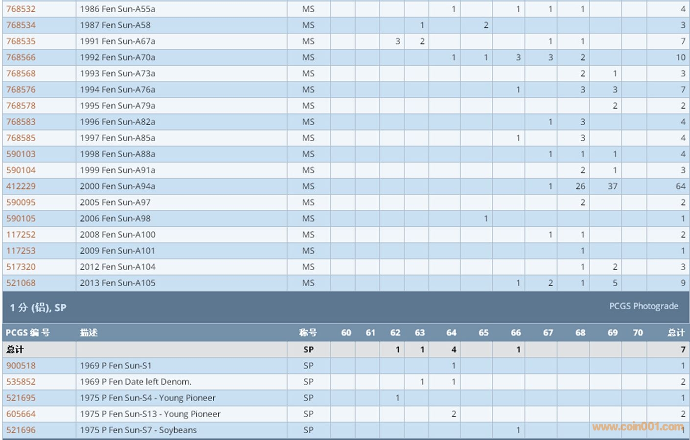 PCGS硬幣評級數(shù)量報告 ..