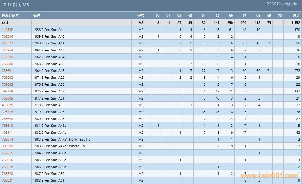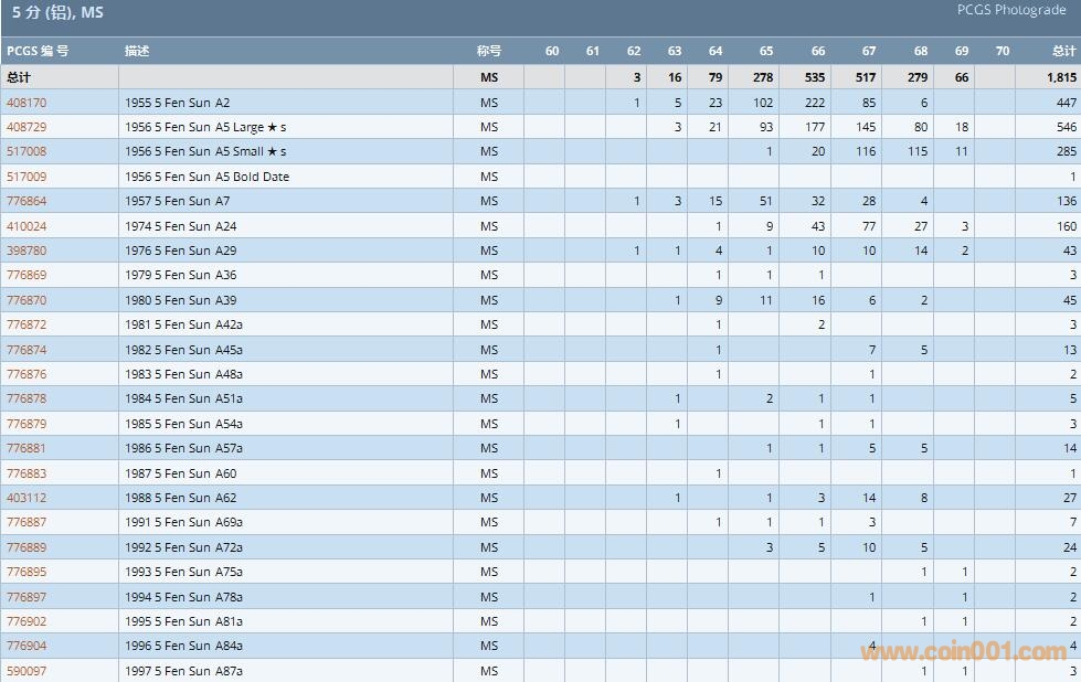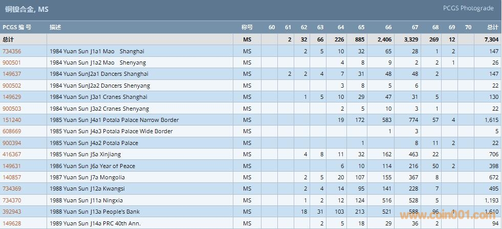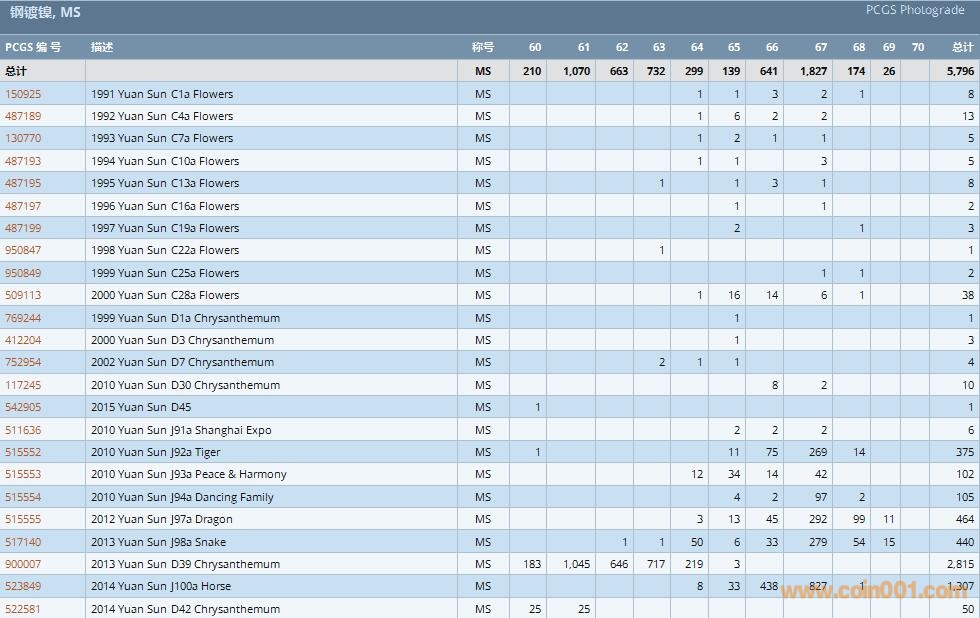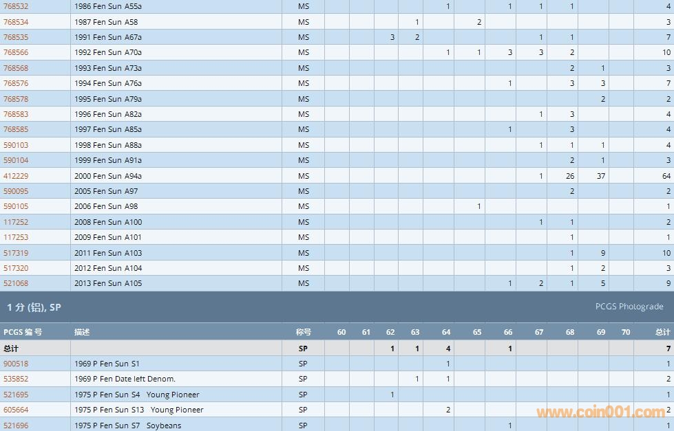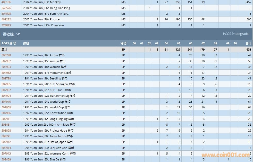 PCGS硬幣評(píng)級(jí)數(shù)量報(bào)告 ..