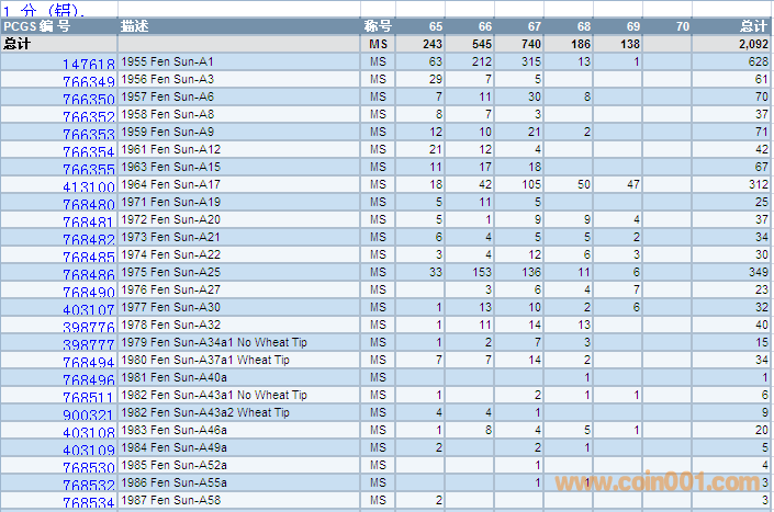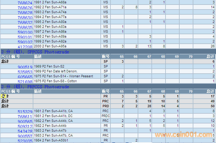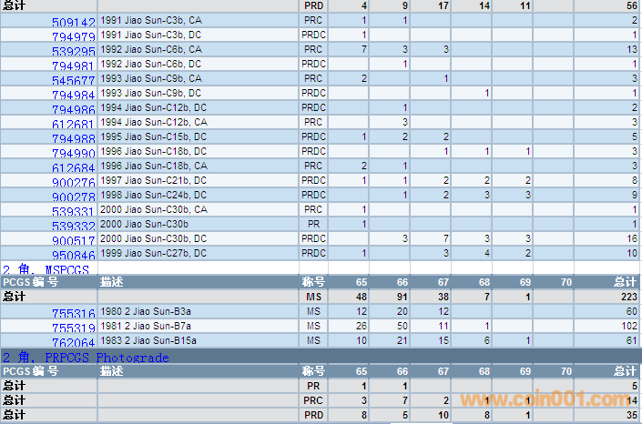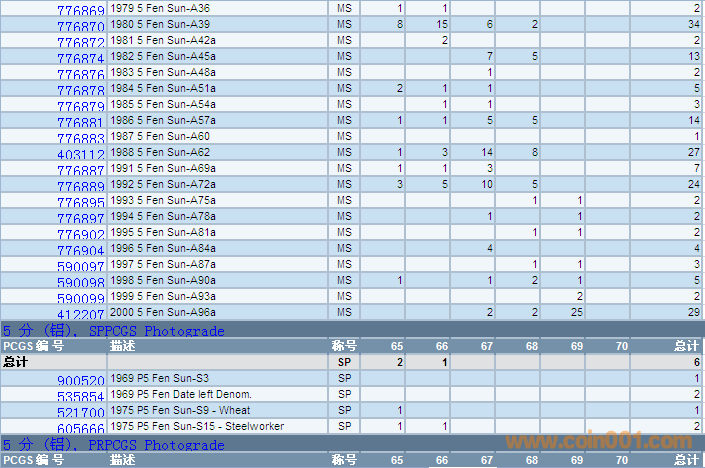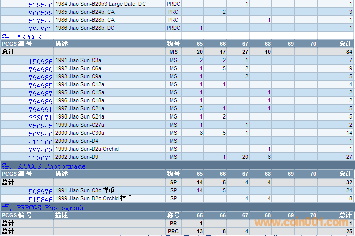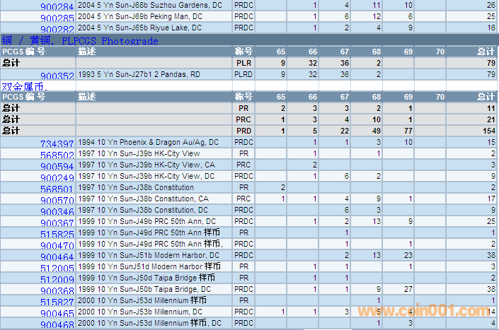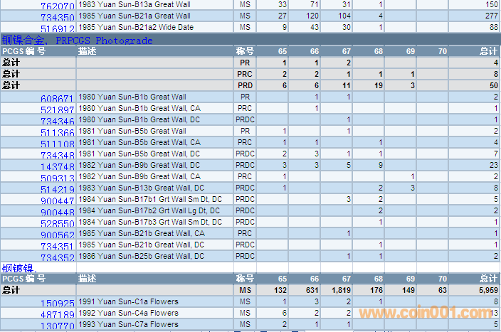 PCGS硬幣評(píng)級(jí)數(shù)量報(bào)告 ..