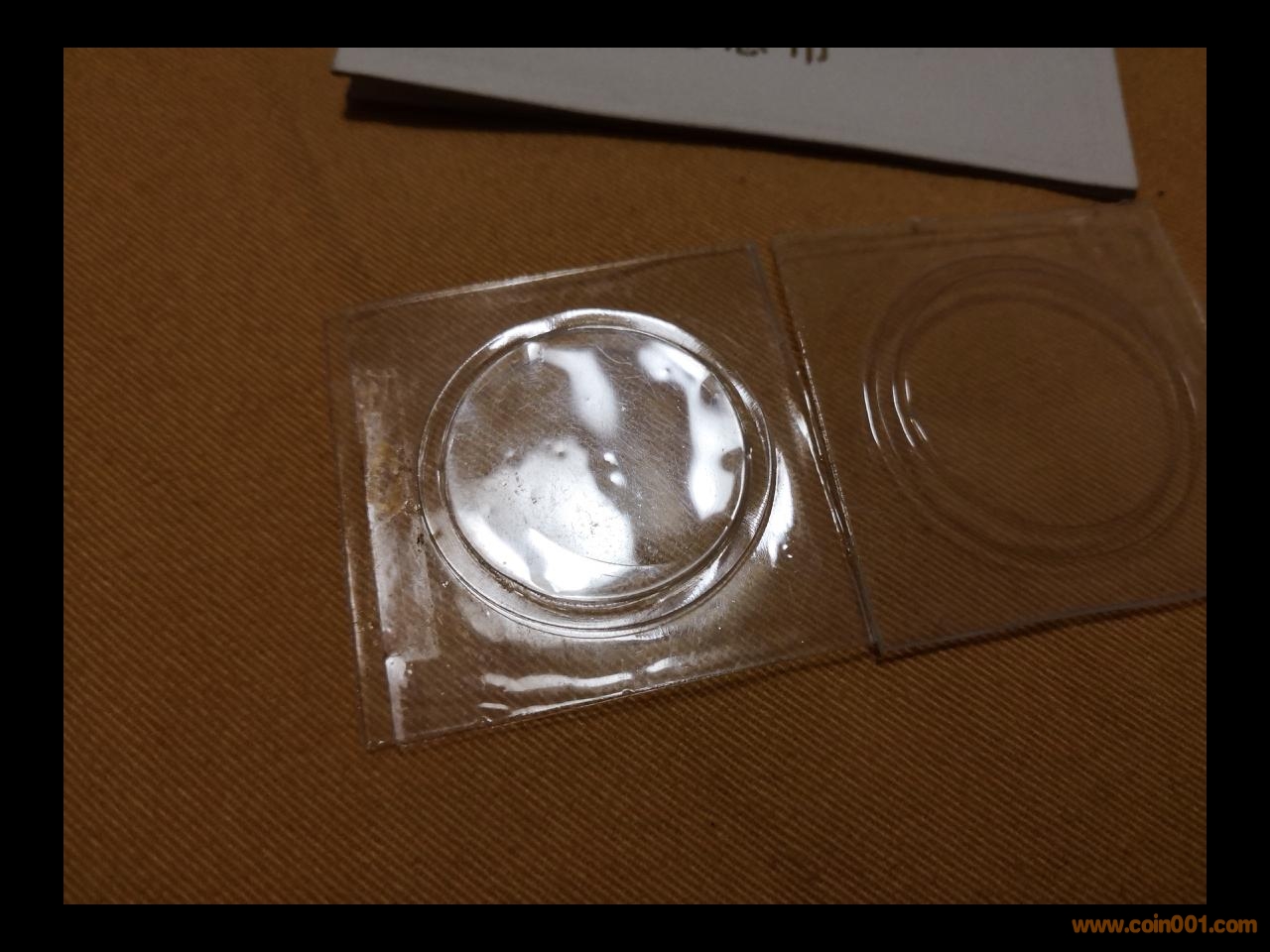二、幣外面的塑料片,普制和精制我一共發(fā)現(xiàn)三種,左邊的是普制,是和紙卡一起熱壓塑封起來,固定密封的,幣拆出要剪刀剪開塑料片。