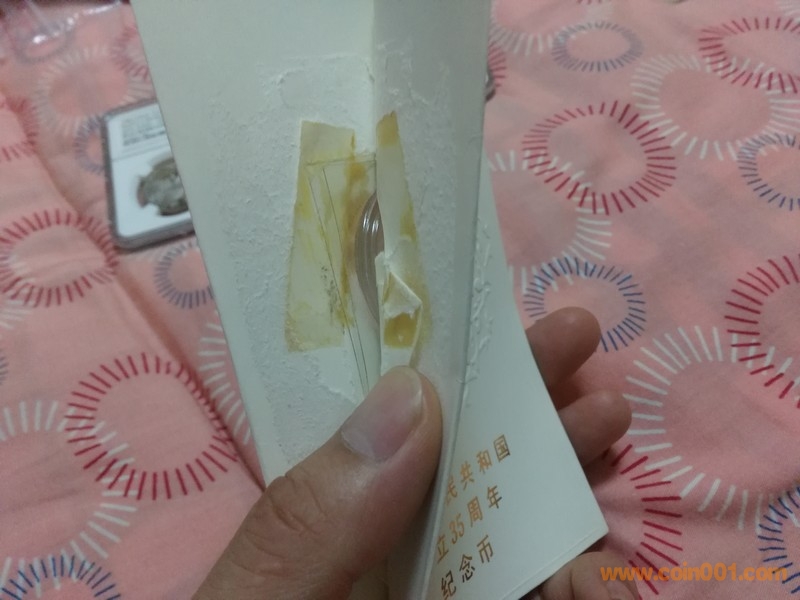 趙兄,不是說換幣,只是在評級流行以前,原裝冊的價值是遠高于裸幣,其二雙面膠老化速度遠比我們想象要快的多,3-5年足矣,最后你那張圖片除了發(fā)黃的雙面膠帶外,紙卡上還有撕扯開的痕跡,說明還有另外一種粘合方式存在,如果是原裝這不是多此一舉了嗎?綜上對這第3種包裝正宗性持保留意見。