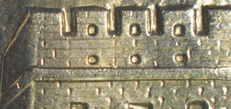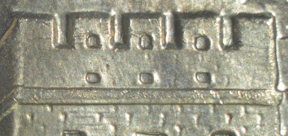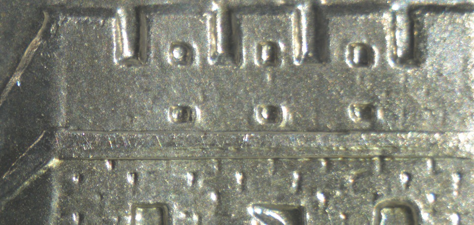 按照正常造幣原理來說,墻磚銜接縫在工作模上是凸起的,壓印到坯餅上產(chǎn)生了凹陷效果,那么這些出現(xiàn)在“無磚”版801上面的墻磚銜接縫痕跡是否表明“無磚”版801的工作模是來自于“有磚”版801工作模修模結(jié)果?