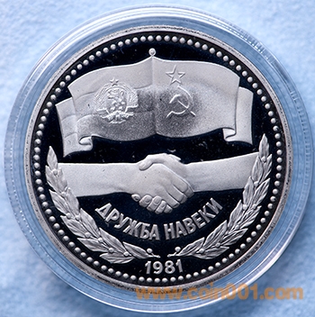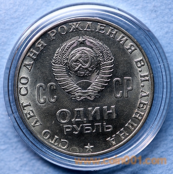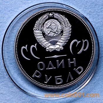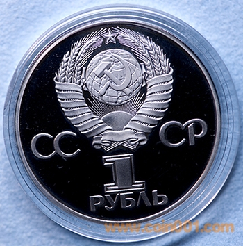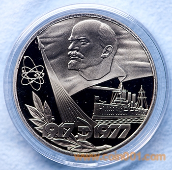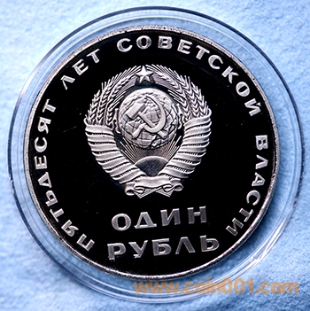 正面:國徽,周圍是50年,蘇維埃,政權(quán)字樣.意為10月革命勝利50周年或蘇維埃建政50年.底下是1盧布,和第一枚同樣,1沒用阿拉伯?dāng)?shù)字,也找不到發(fā)行年份.不過此幣是成套發(fā)行,在小面額幣上有1917-1967字樣.