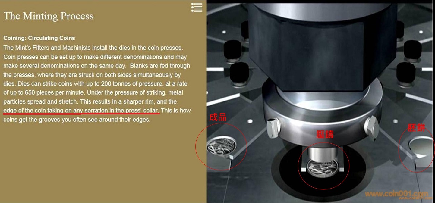 邊齒。有些壓印好的幣會加一道幣邊滾字工序。