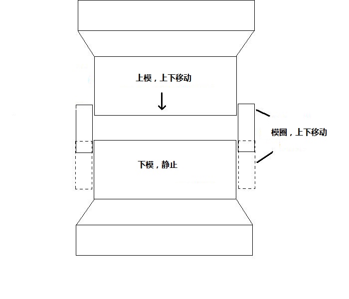 以下兩張圖說明了壓印時各個模具的位置和動作。一張我翻譯的,一張取自新浪博客上那個東拉西扯的帖子。這里用的是升降式模圈。