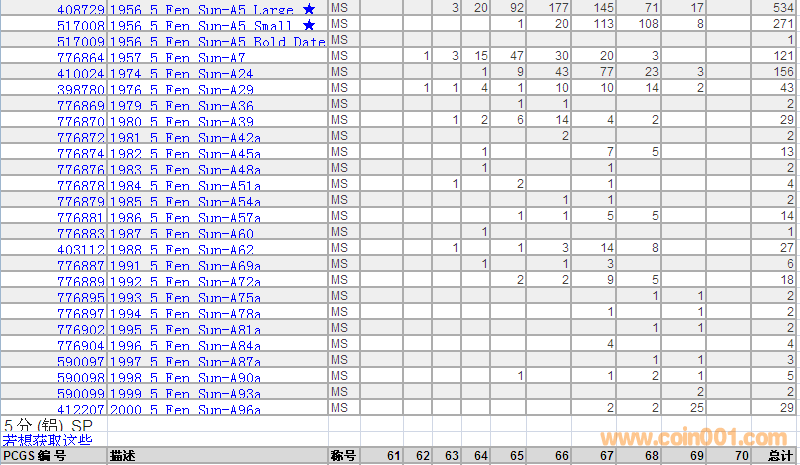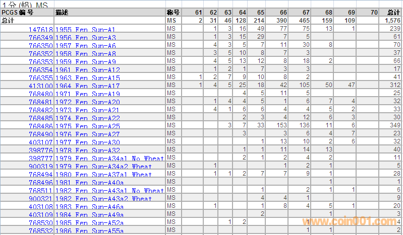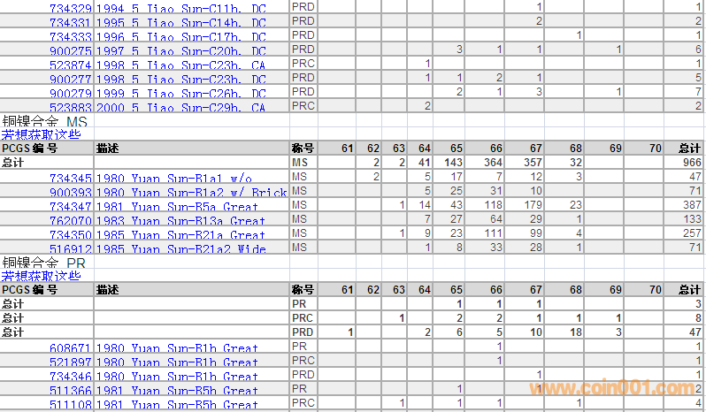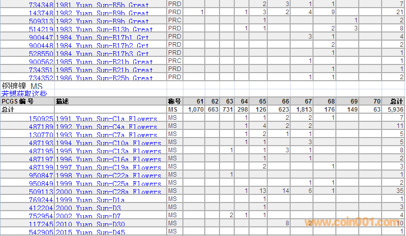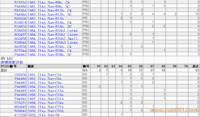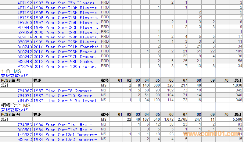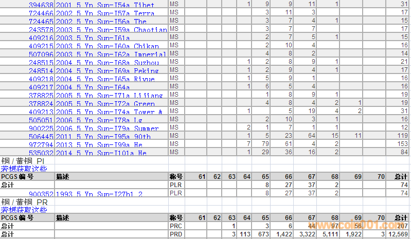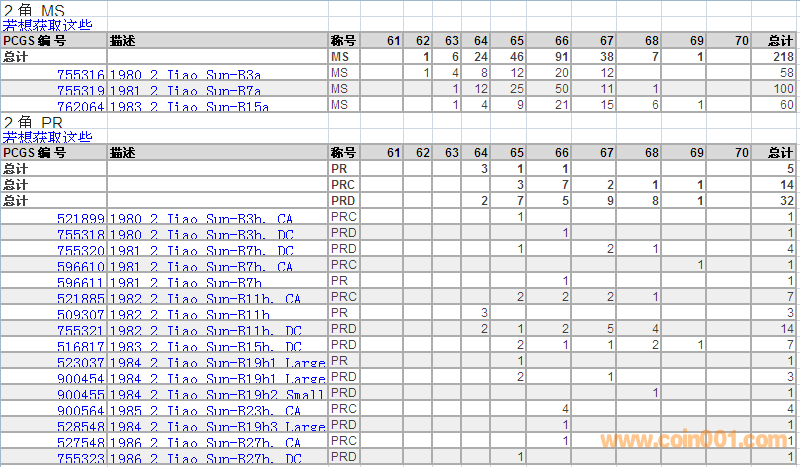 PCGS硬幣評(píng)級(jí)數(shù)量報(bào)告 ..