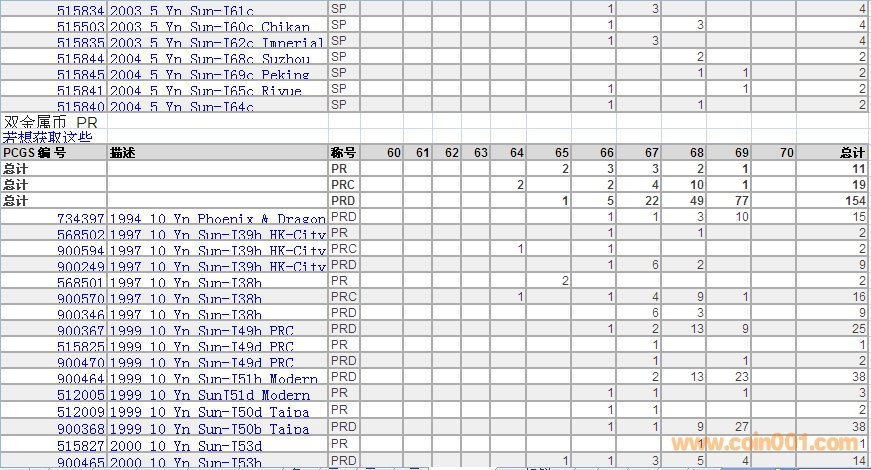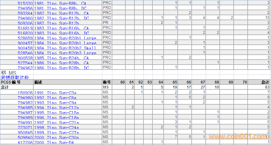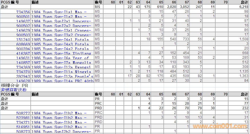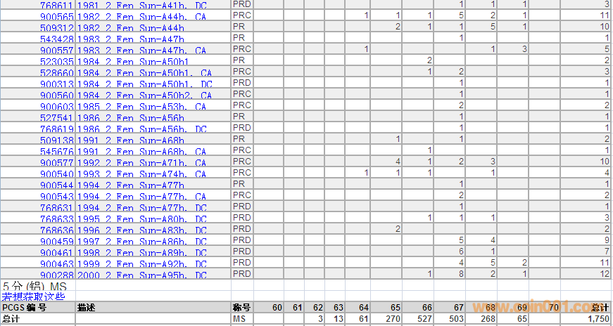 PCGS硬幣評級數(shù)量報(bào)告 ..