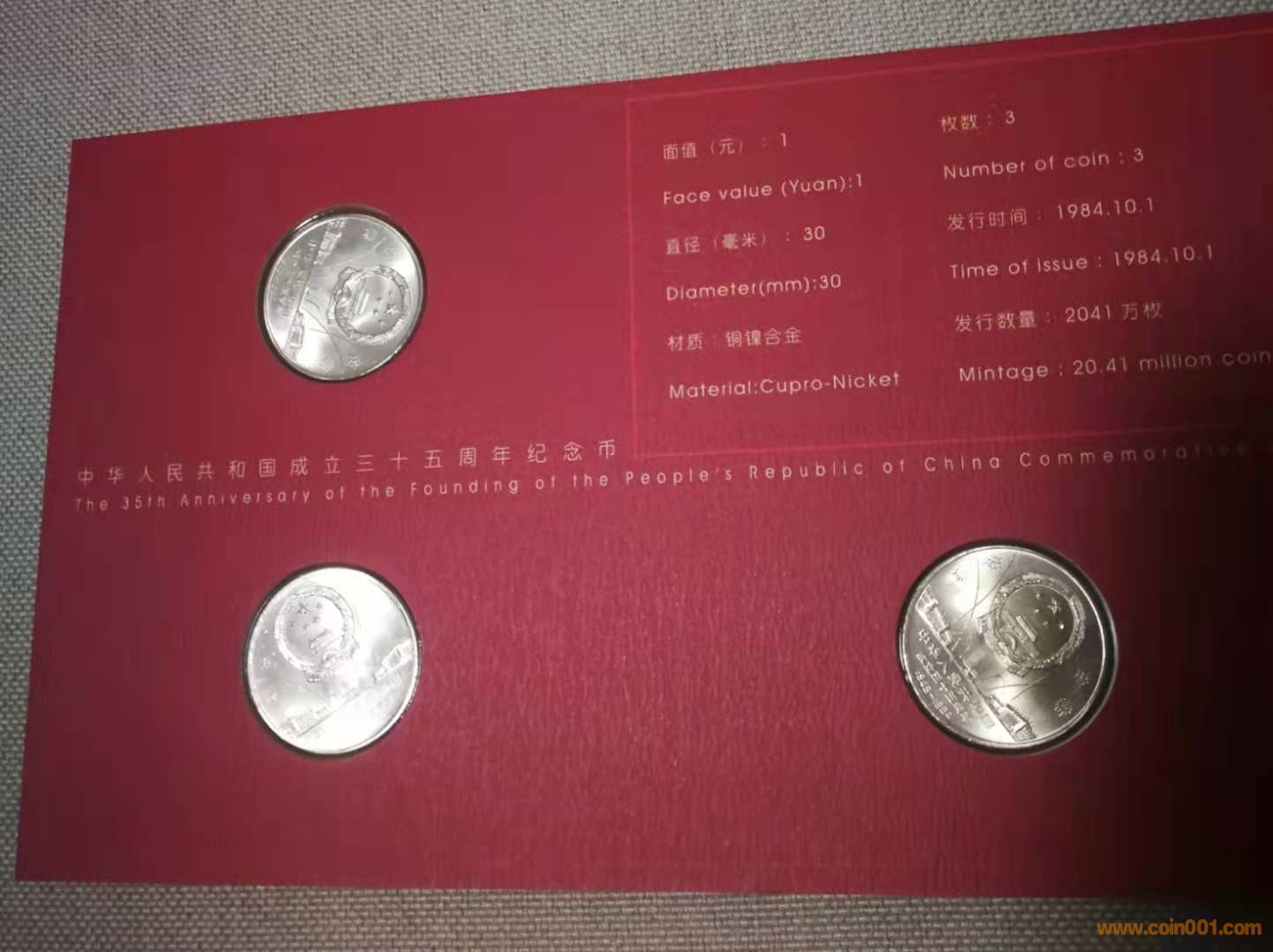 四是可以按照年份來(lái)收藏,比如1984年發(fā)行的建國(guó)35周年普制紀(jì)念幣一套3枚,可以逐年把各種包裝收集起來(lái)。