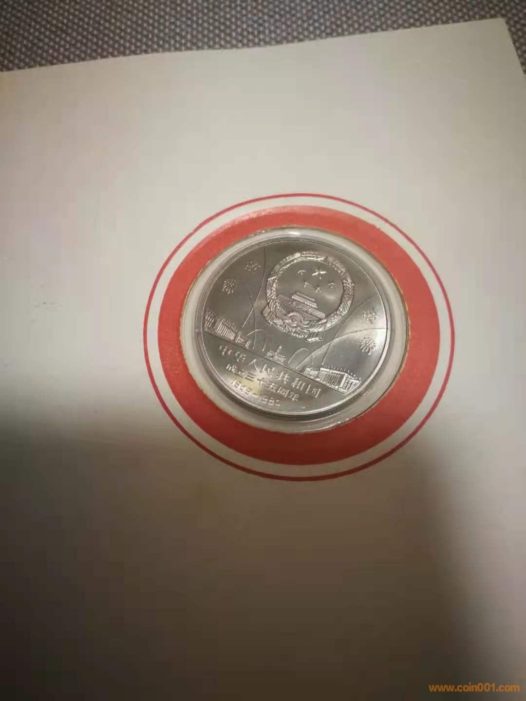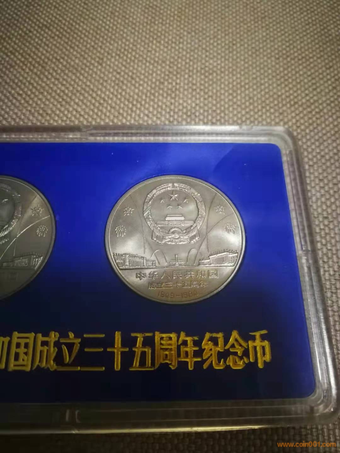 下面是造幣總公司裝幀的建國(guó)三十五周年紀(jì)念幣,大典制卡,華表歡慶塑料卡,紀(jì)念幣非常精美,完全可以媲美精制幣,也是筆者最喜歡的建國(guó)三十五周年原包裝之一。