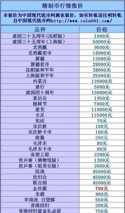 普通(精制)紀(jì)念幣交易