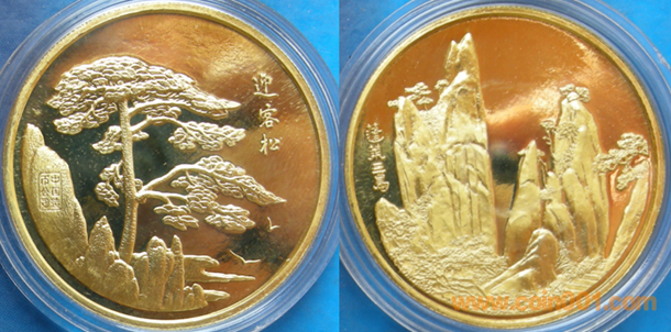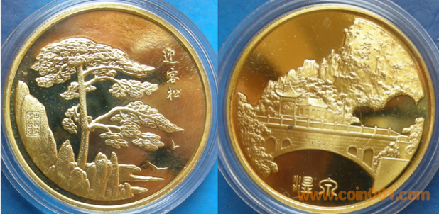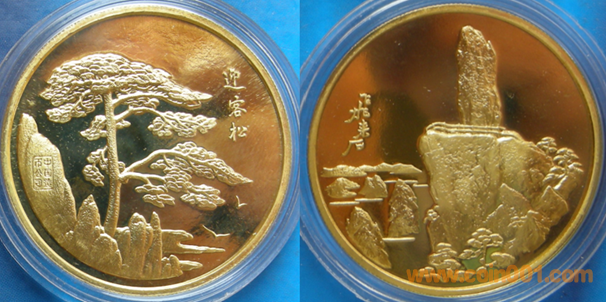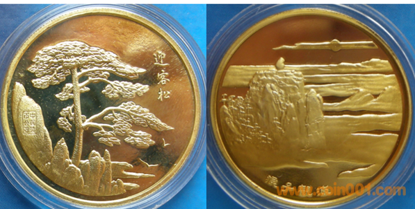 正面為黃山迎客松,反面為猴子觀海、蓬萊三島、飛來石、溫泉。