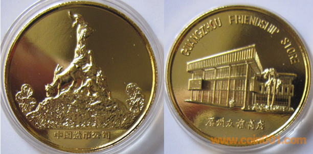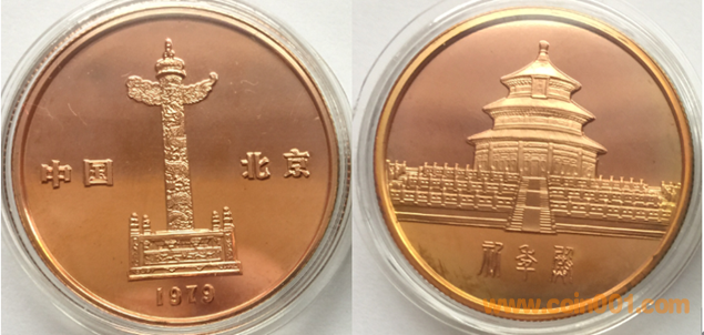 1981年上海造幣廠發(fā)行,黃銅精制、鍍金普制、27mm。