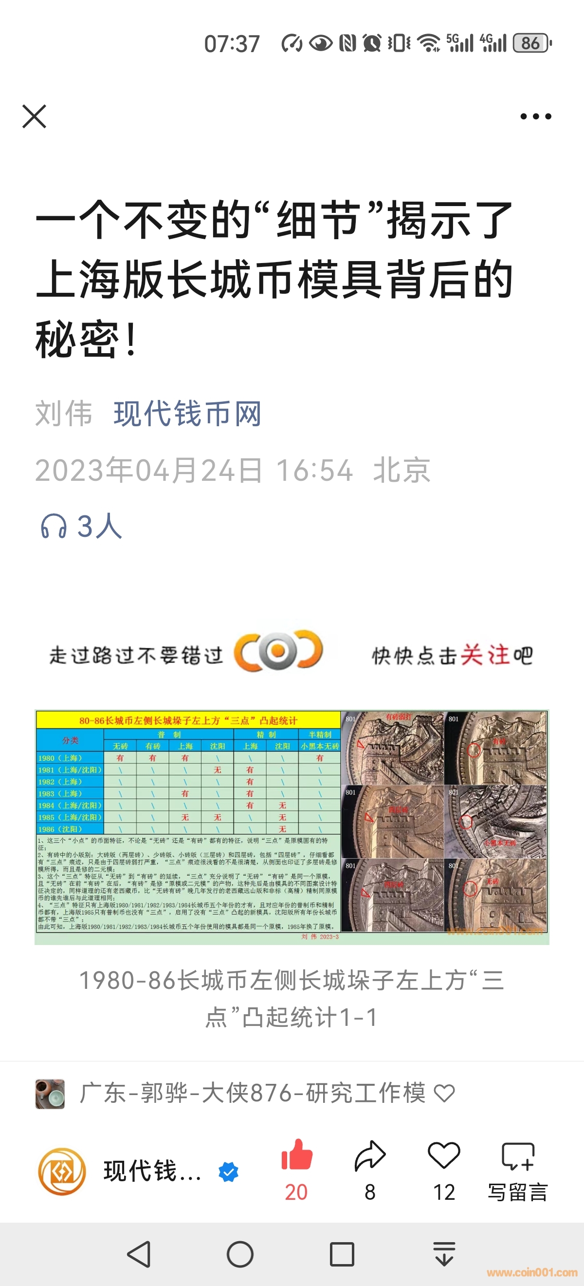 引用 引用第196樓131大雙齒錯于2025-04-24 08:53發(fā)表的 :為了大家能夠清楚地知道我的研究過程和如何提出試鑄幣結(jié)論,所以,截圖了與孫克勤老師和李代平李總的微信截圖,在此感謝!其他同時與我交流的研究者、愛好者、資深藏家玩家的交流就不截圖了!我再把現(xiàn)代錢幣網(wǎng)轉(zhuǎn)發(fā)我的研究成果的公眾號文章再發(fā)一次,供大家了解交流和學(xué)習(xí),在此恭候?qū)<覍W(xué)者、藏家玩家進(jìn)一步研究和探討!