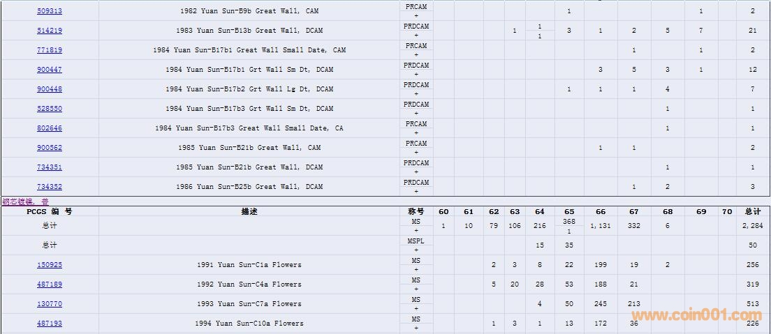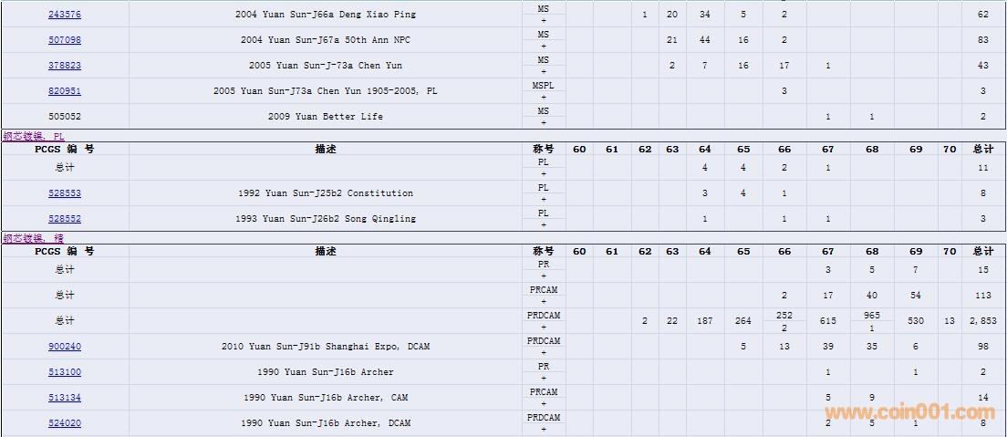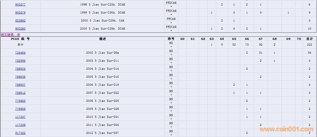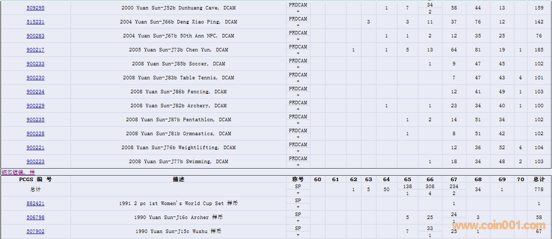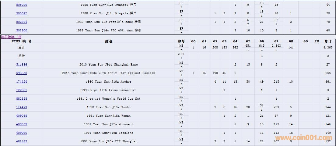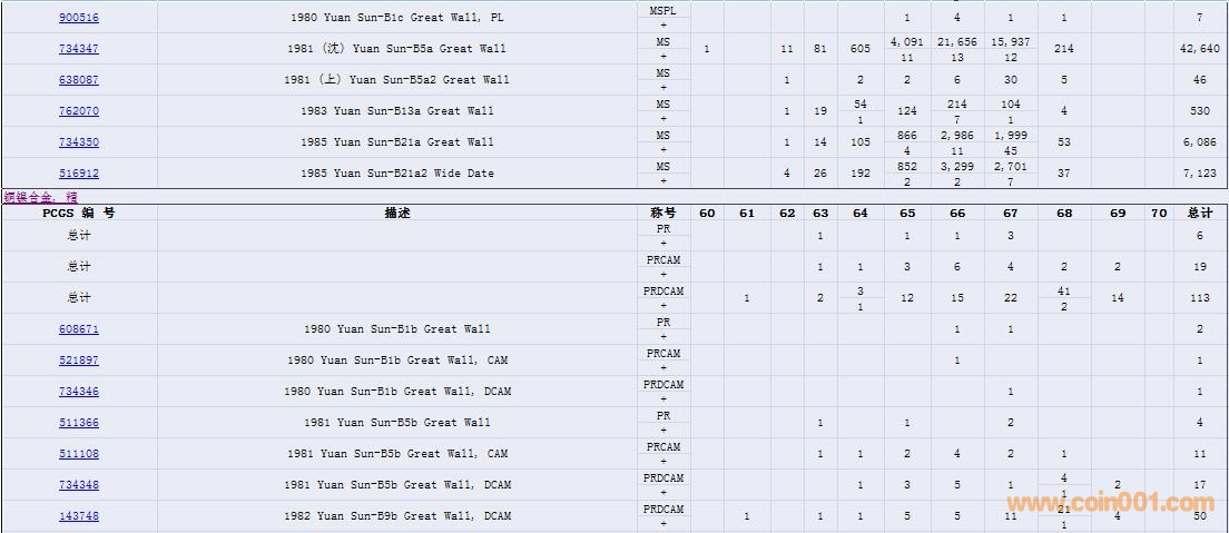 PCGS硬幣評(píng)級(jí)數(shù)量報(bào)告( ..