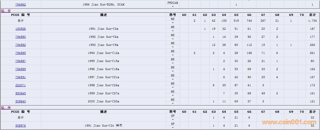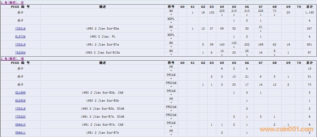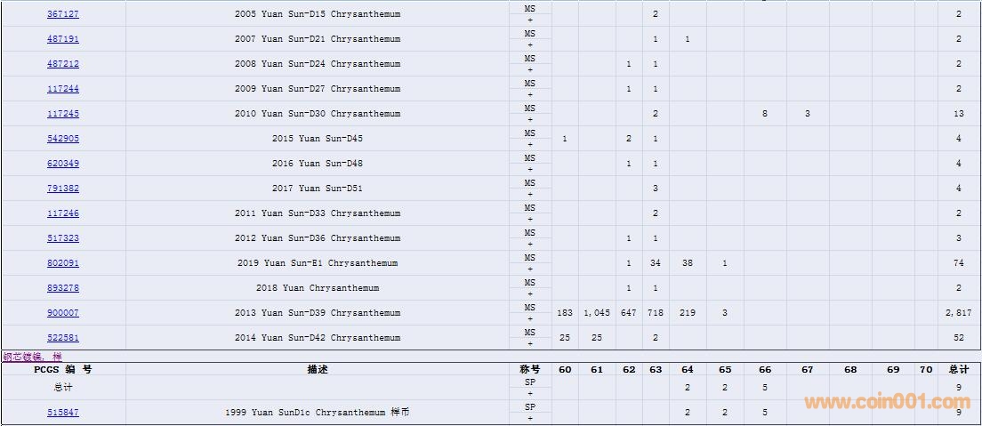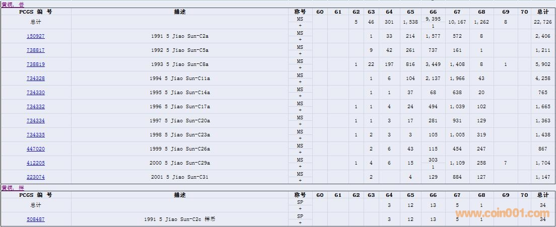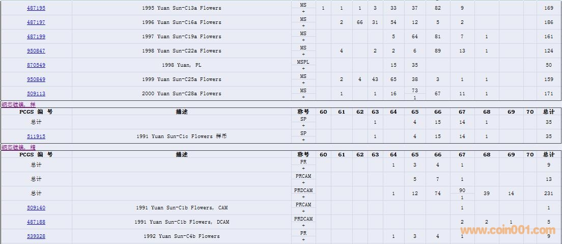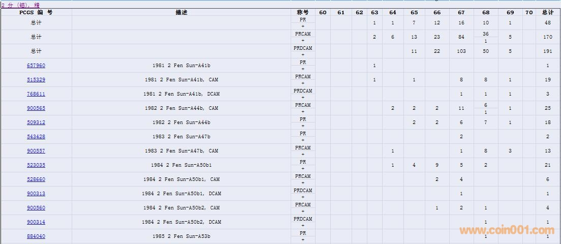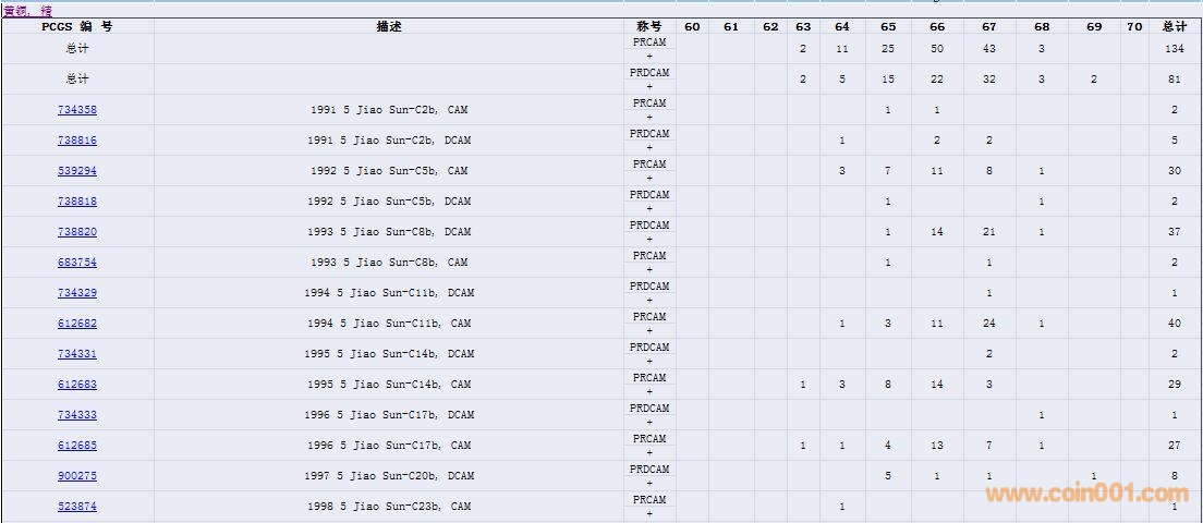 PCGS硬幣評(píng)級(jí)數(shù)量報(bào)告( ..