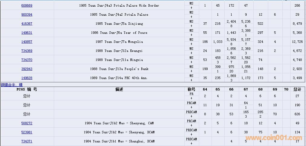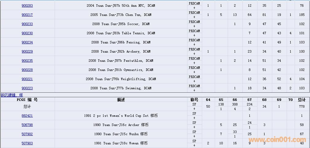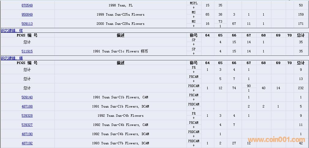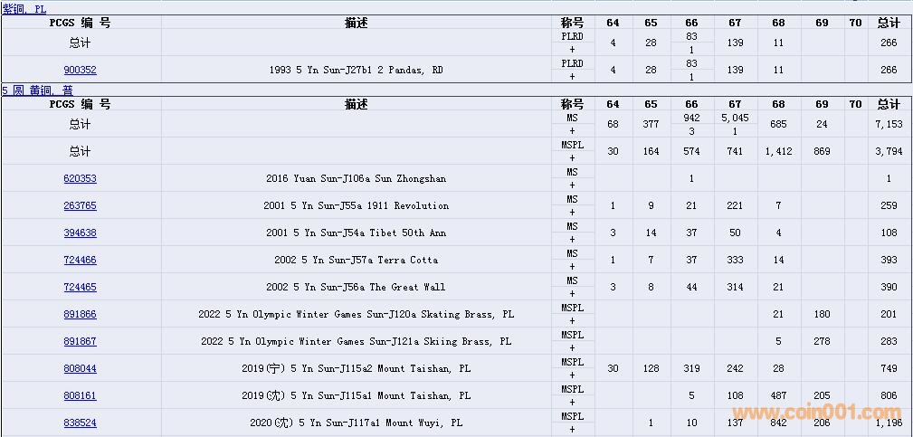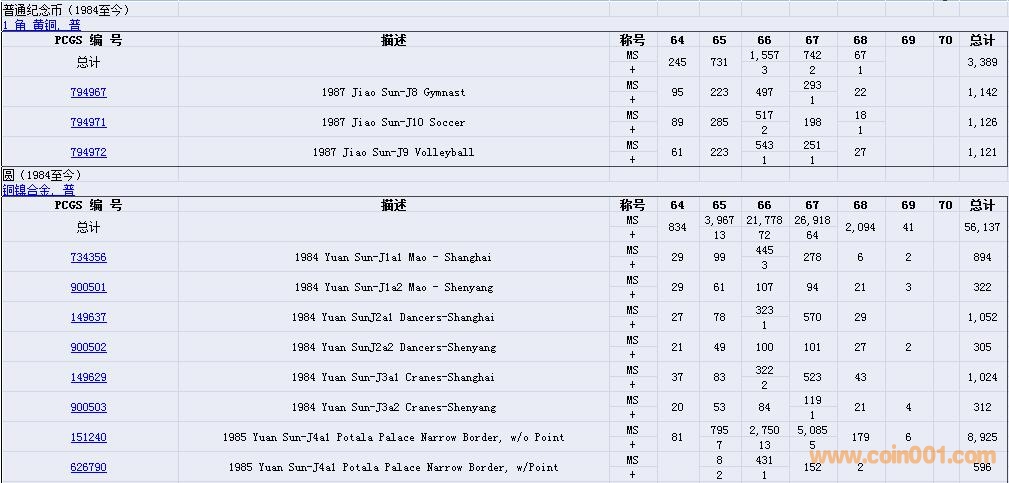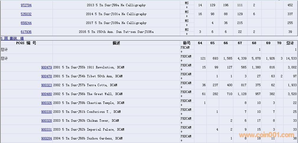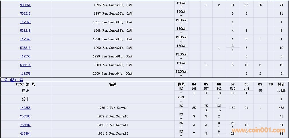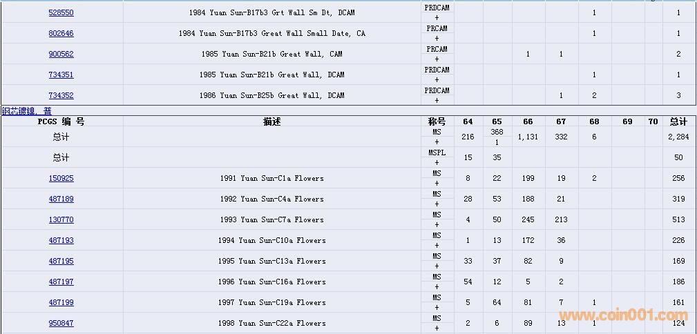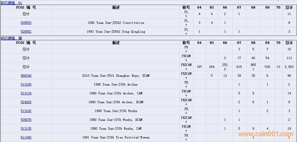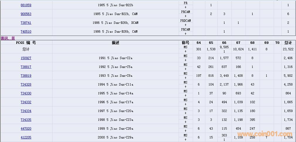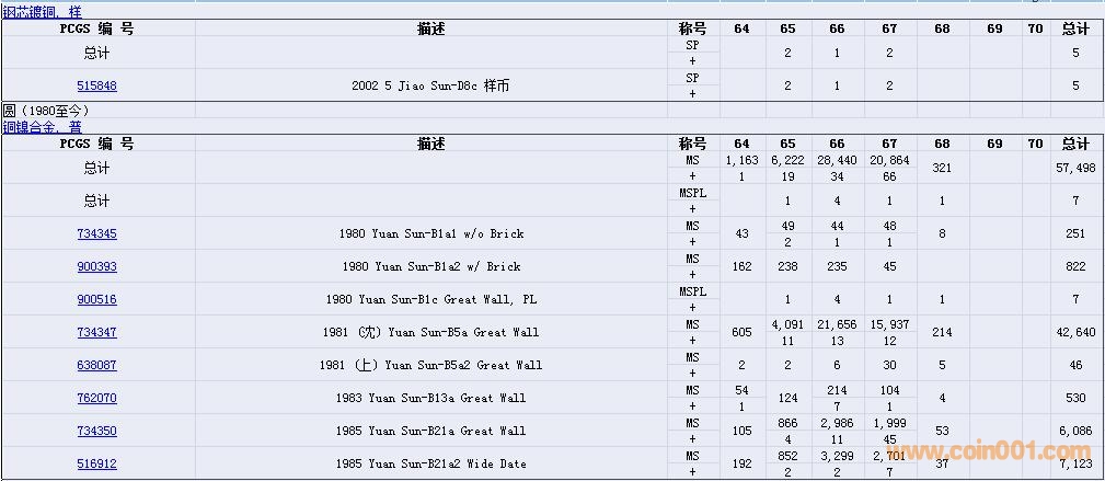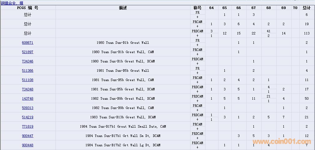 PCGS硬幣評級數(shù)量報告( ..