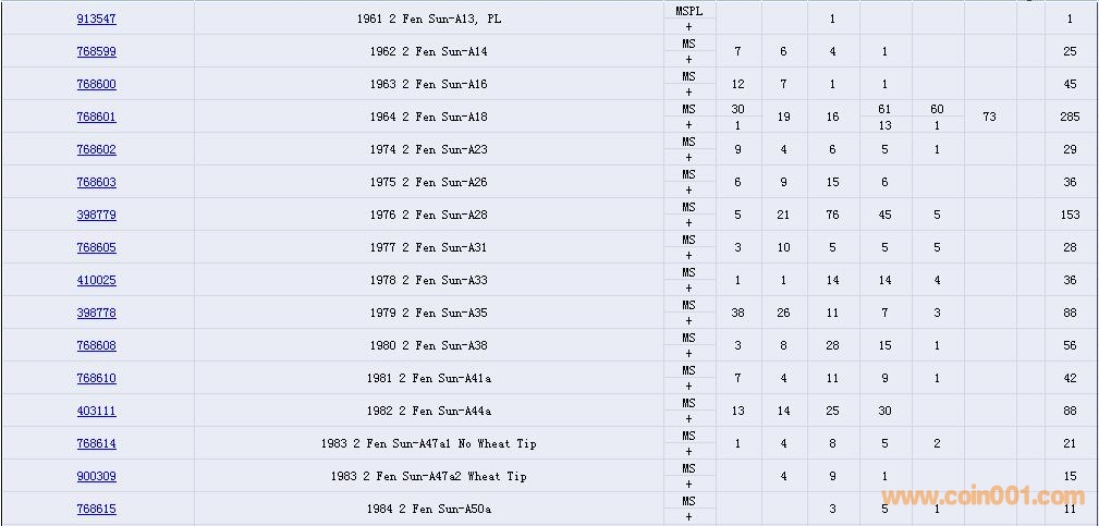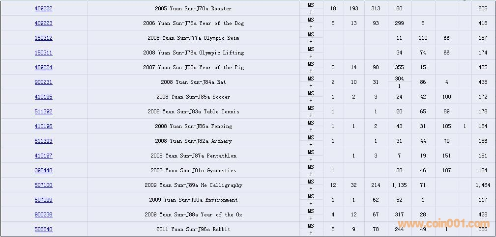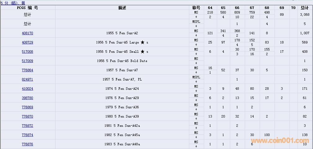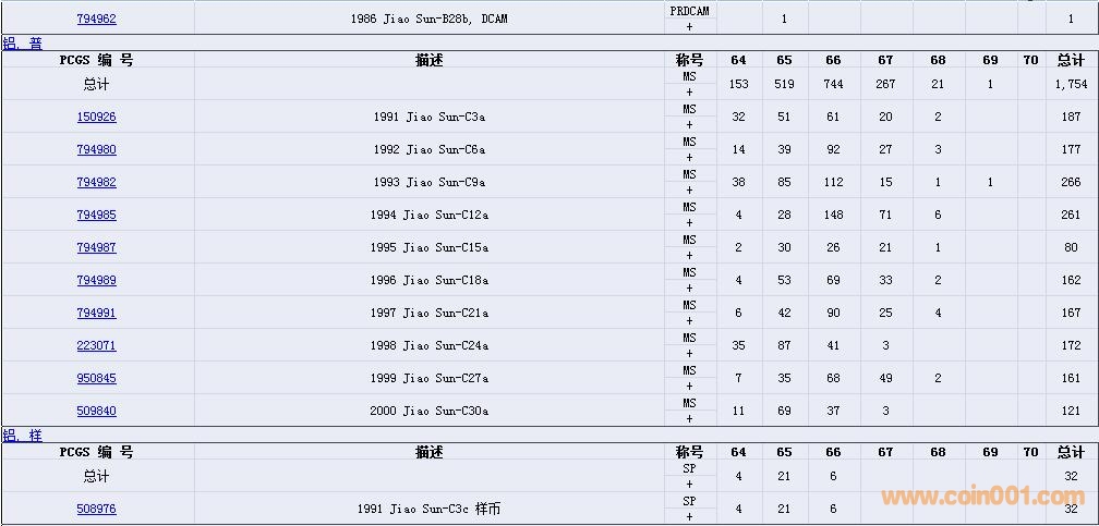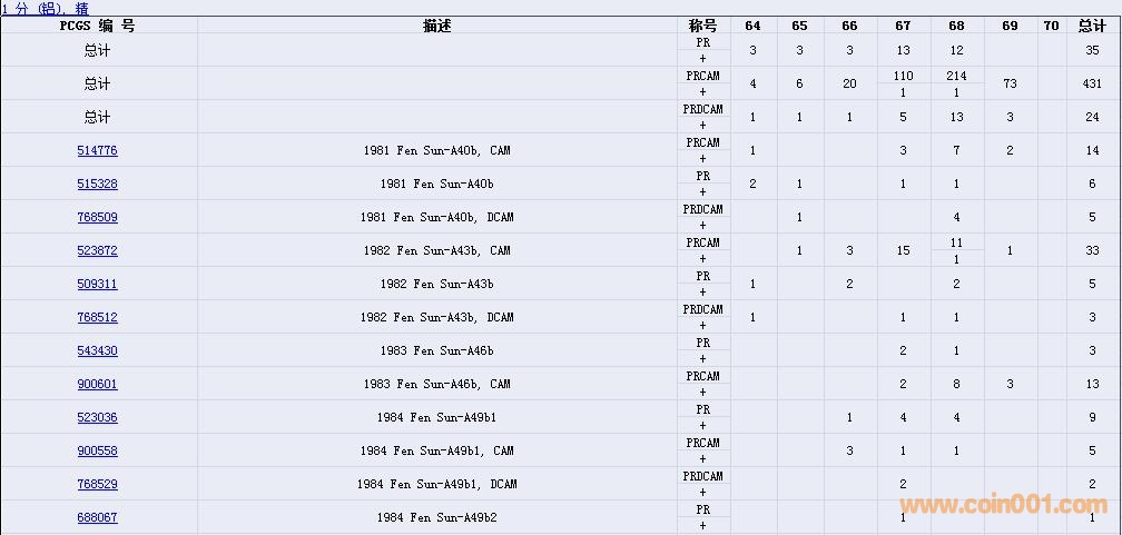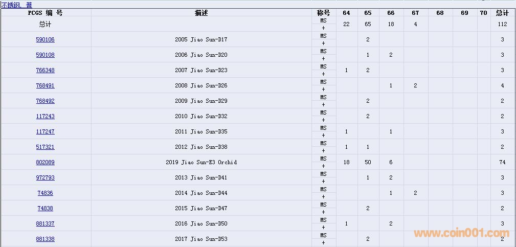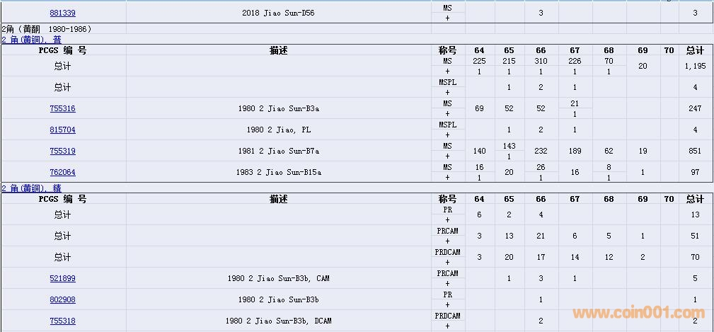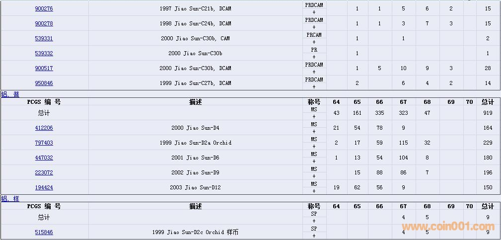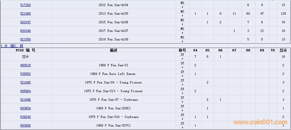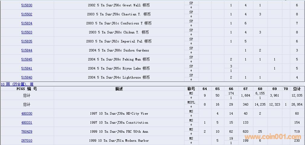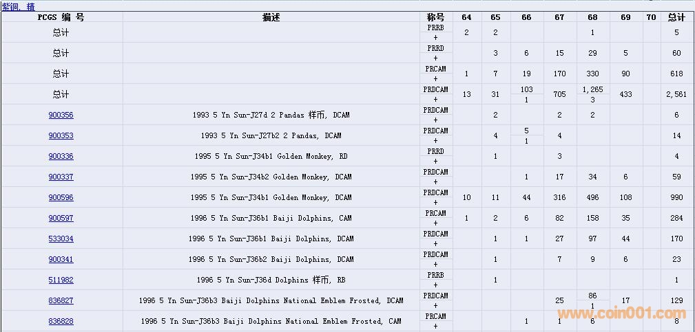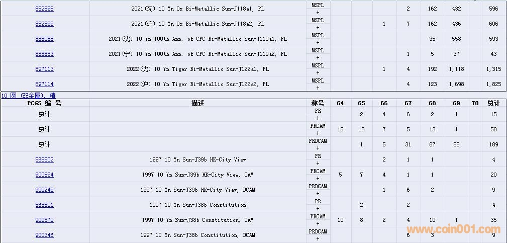 PCGS硬幣評級數(shù)量報告( ..