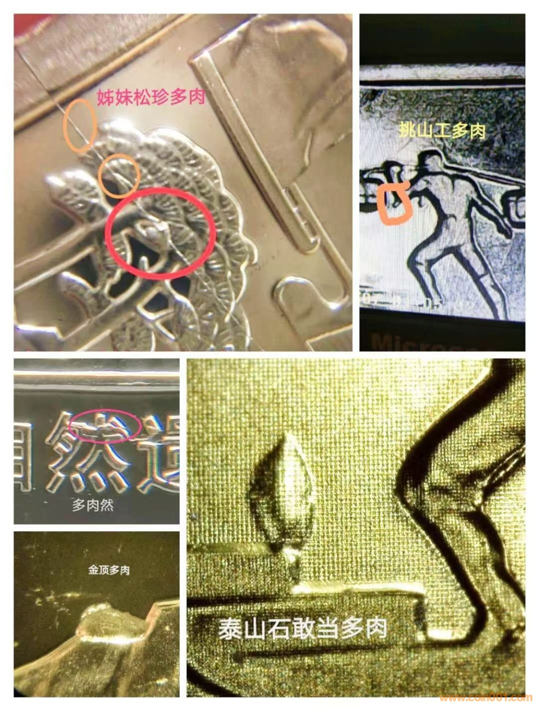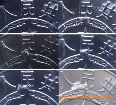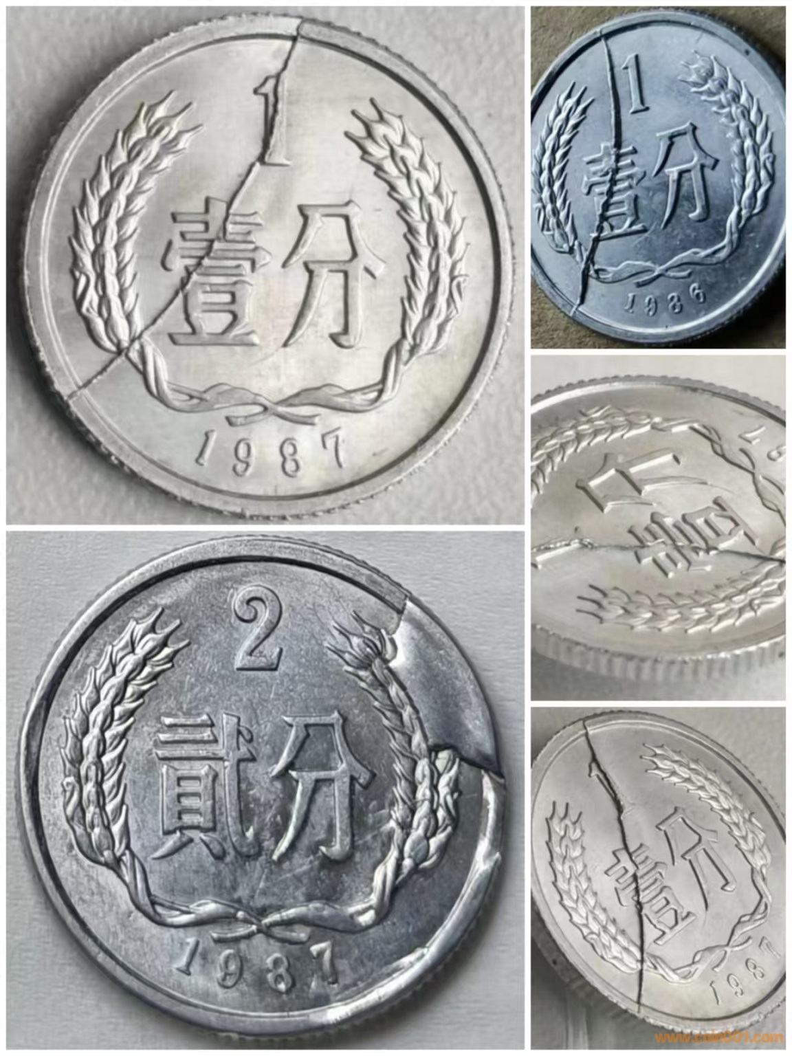 比如原模翻印二元?;蚬ぷ髂3霈F(xiàn)的問題或錯誤,這種常見的錯鑄幣是重模幣;比如沖模過程出現(xiàn)錯誤或失誤導(dǎo)致的缺口幣;工作模壓印硬幣出現(xiàn)的各種明顯不同于正常幣的錯鑄幣更多,比如:背逆、復(fù)打、弱打、偏打、壓力透打、空模透打、多肉、少肉、天坑等等,還有肥羊瘦羊、肥鴿瘦鴿、缺石虎、國字缺橫、建行多肉民等等。
