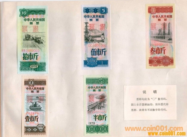 1976 年9月9日毛澤東主席病逝,10月6日黨中央一舉粉碎了"四人幫".一時國內政治.經(jīng)濟.社會不很平靜;國內外各種敵對勢力不斷制造緊張關系.為防止突發(fā)戰(zhàn)爭,中共中央國務院決定儲備一定數(shù)量的糧票,于1978年絕密印制了一定數(shù)量的糧票:即中華人民共和國糧票,代號為"7818"工程.該票5枚一套.糧票印好后儲存在北京,吉林,湖南.江西和陜西等五省市"戰(zhàn)備"倉庫內.