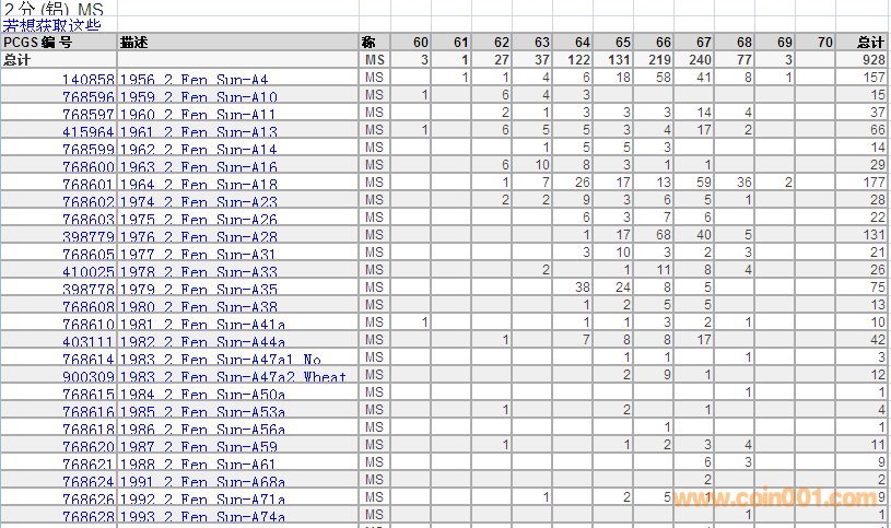 PCGS硬幣評(píng)級(jí)數(shù)量報(bào)告 ..