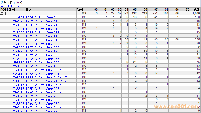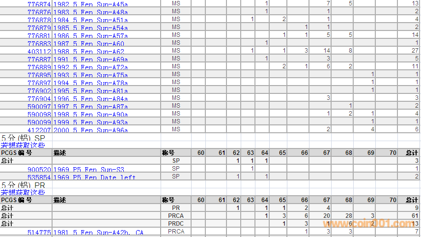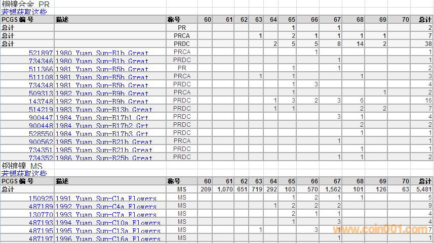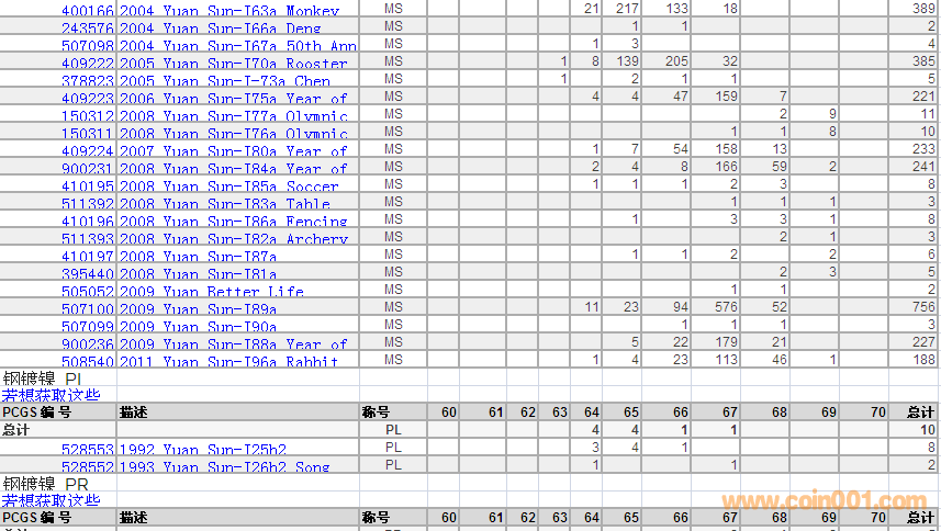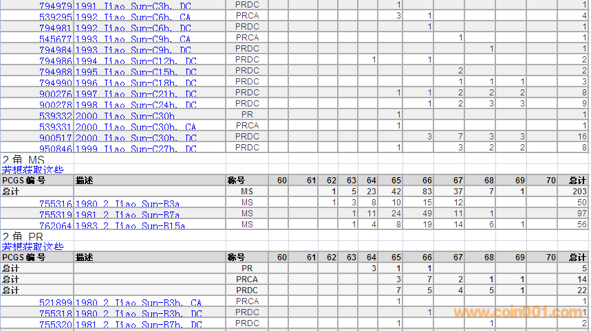 PCGS硬幣評(píng)級(jí)數(shù)量報(bào)告 ..