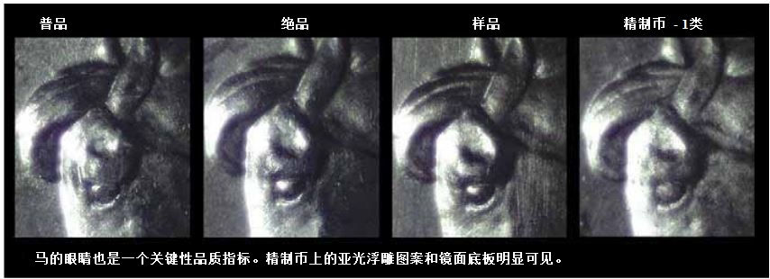 定義精制壓印的公認(rèn)定義,是一副特制的印模經(jīng)過(guò)與普通印模不同的表面處理以后,被用來(lái)生產(chǎn)亞光、鏡面或凝霜的幣面。工藝上其它的不同之處還包括坯餅的兩次壓印,以及使用經(jīng)過(guò)特殊處理的坯餅。這些因素互相結(jié)合,便打造出工業(yè)化藝術(shù)的小小精品。