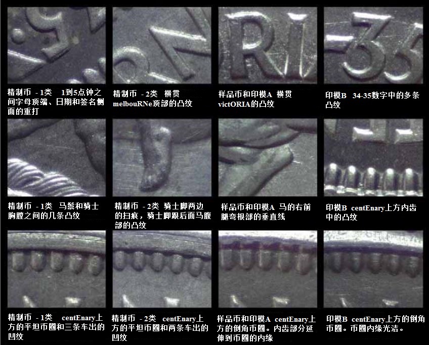 以下是一篇澳大利亞百年紀(jì)念佛羅林銀幣的研究文章。翻譯此文的目的,是介紹國(guó)外對(duì)錢(qián)幣的微觀研究。佛羅林是一個(gè)英制錢(qián)幣單位,相當(dāng)于兩個(gè)先令。百年紀(jì)念佛羅林銀幣是澳大利亞為了紀(jì)念最初兩個(gè)永久居民點(diǎn)(分別建于1834和1835)建立一百周年而發(fā)行的。此文中有對(duì)各種鑄造工藝和佛羅林銀幣模具的詳細(xì)研究,并配有詳圖,代表了國(guó)外錢(qián)幣微觀研究的思路和方法,可讓國(guó)內(nèi)幣友了解國(guó)外錢(qián)幣研究的現(xiàn)狀,為有志于錢(qián)幣微觀研究的幣友提供參考。中國(guó)現(xiàn)代幣的微觀研究尚未起步,希望這篇文章能起到示范作用。