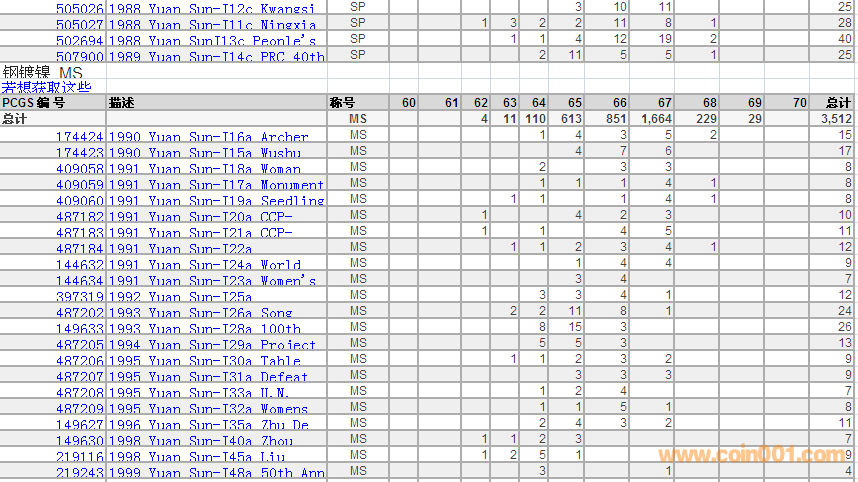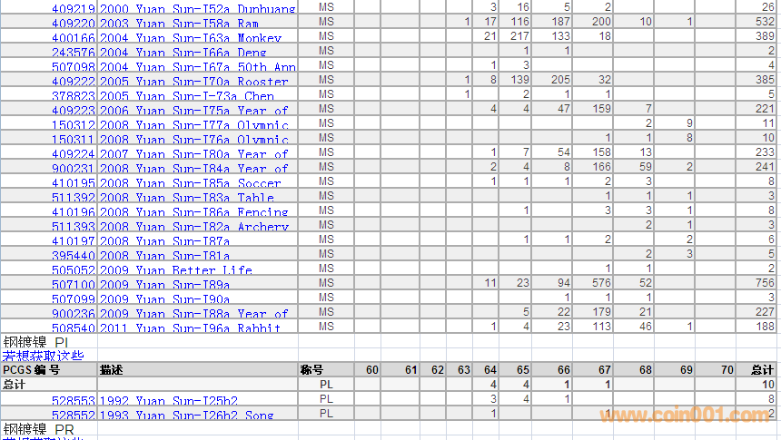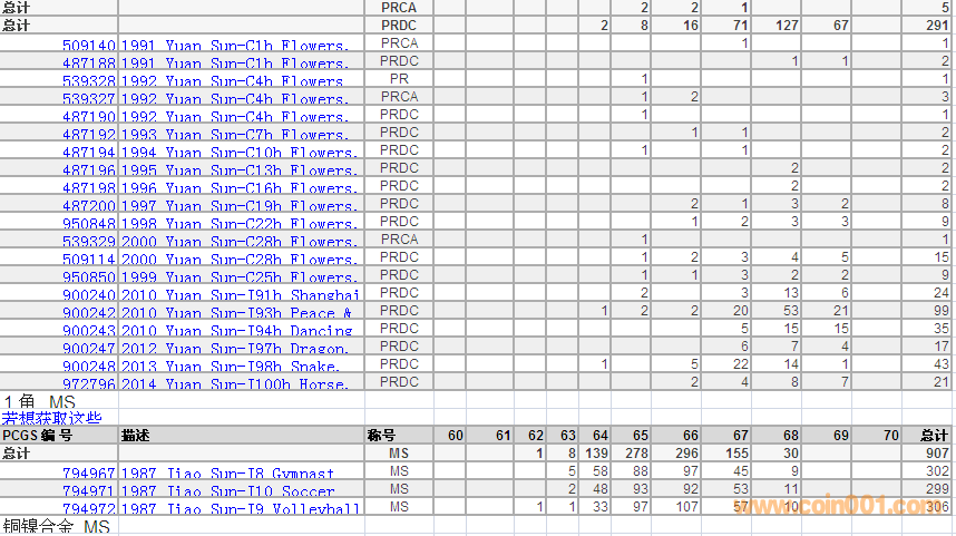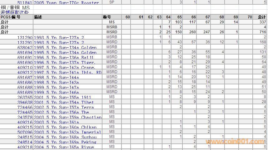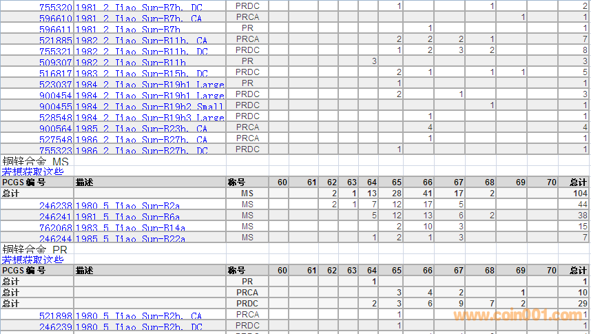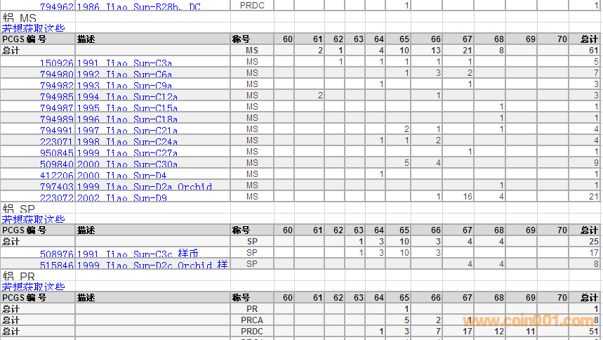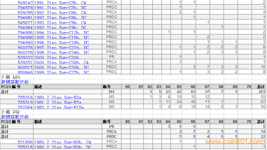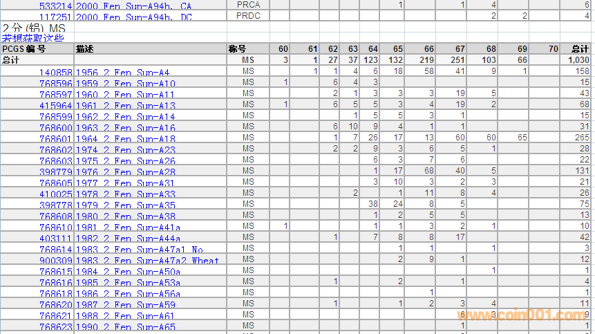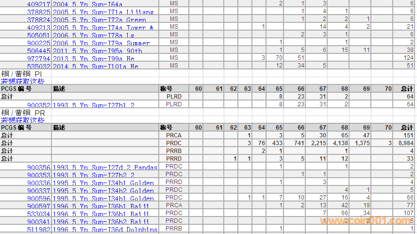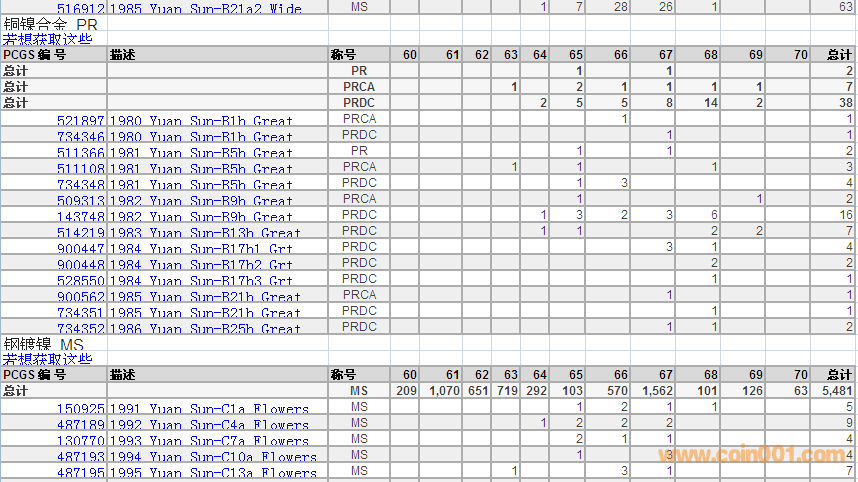 PCGS硬幣評級數(shù)量報告 ..
