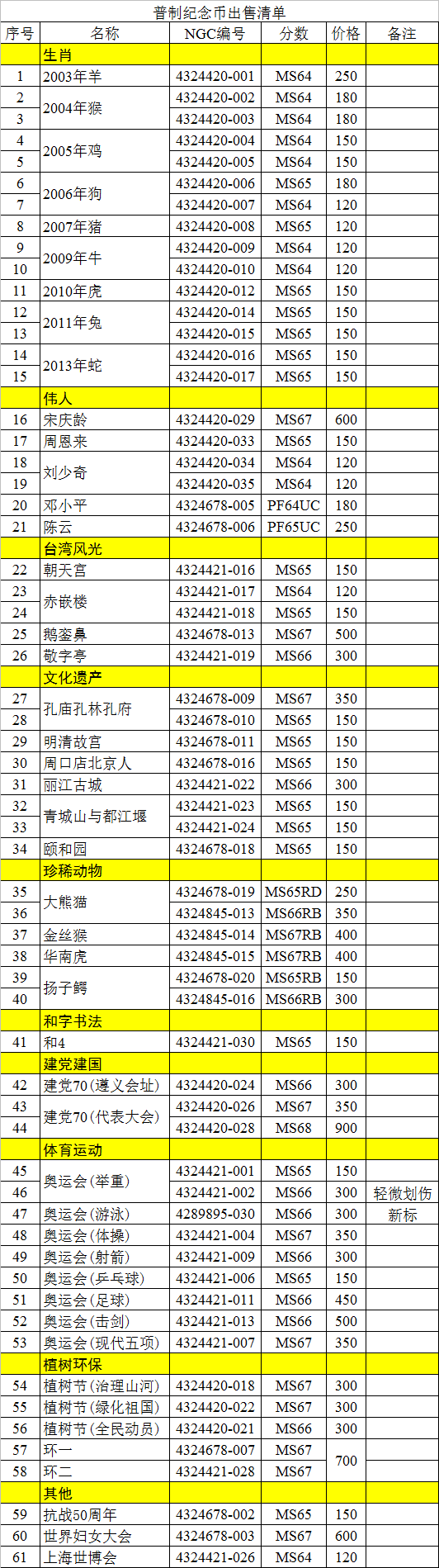 普通(精制)紀(jì)念幣交易