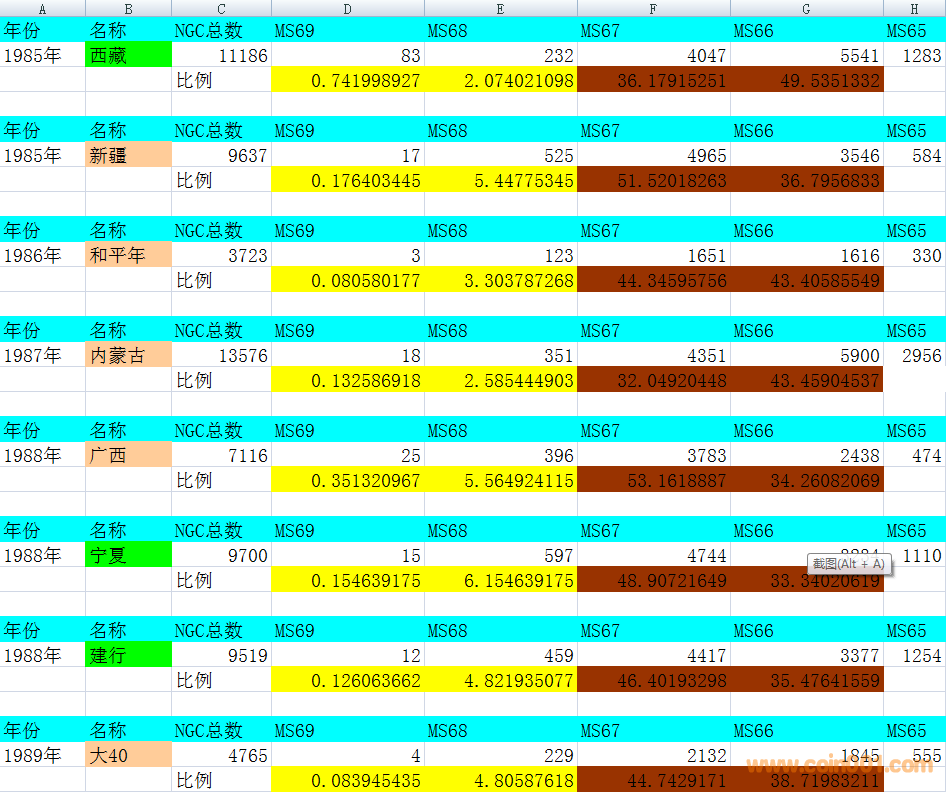 NGC出分比例統(tǒng)計表, ..