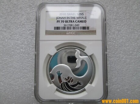 二. 發(fā)行:以色列國家銀行;鑄造:耶路撒冷造幣廠;材質(zhì): 92.5% 銀;數(shù)量:2800枚[稀少,世界范圍發(fā)行];重量: 28.8克;直徑: 38.7毫米;面值: 2新謝克爾;銀幣正面上緣中央為以色列國徽,國徽下方為希伯來文、英文和阿拉伯文以色列國名,和周圍“約拿在鯨魚腹中”字樣;中央刊面額,此枚銀幣得來頗為不易,遙遙千里,幾番輾轉(zhuǎn),歷經(jīng)時(shí)日。