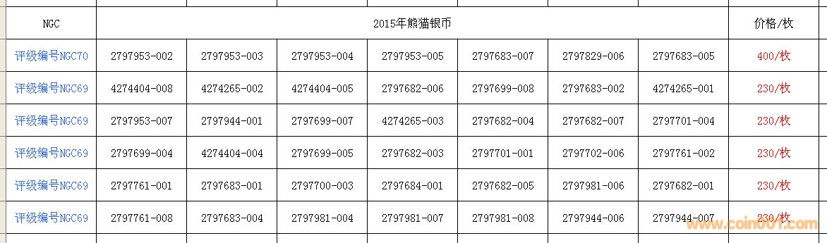 低價售;2015年熊貓銀 ..