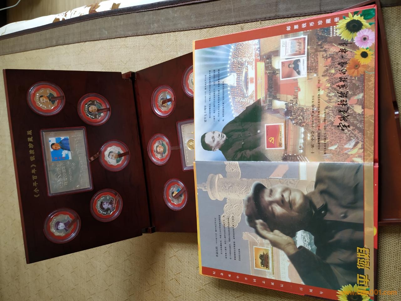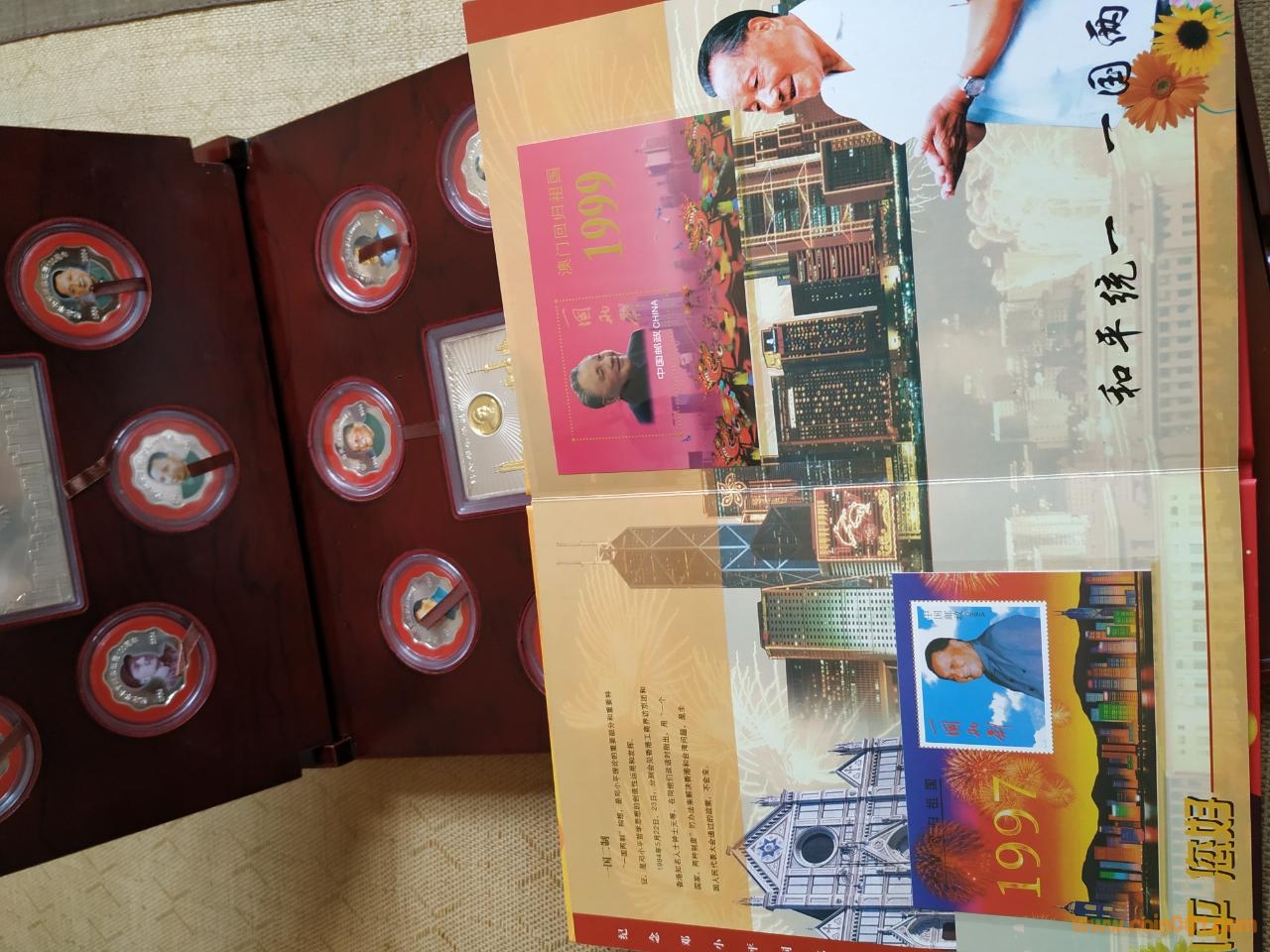 現(xiàn)低價(jià)出售鄧小平百年銀質(zhì)紀(jì)念章,郵票珍藏冊(cè)一套,包含鄧小平從少年到老年個(gè)時(shí)期的銀質(zhì)紀(jì)念章十枚,銀質(zhì)薄片一枚,銀質(zhì)銀磚一塊,以及澳門,香港回歸小型張等多種紀(jì)念郵票,具有極高的收藏價(jià)值,價(jià)格750元,包郵。